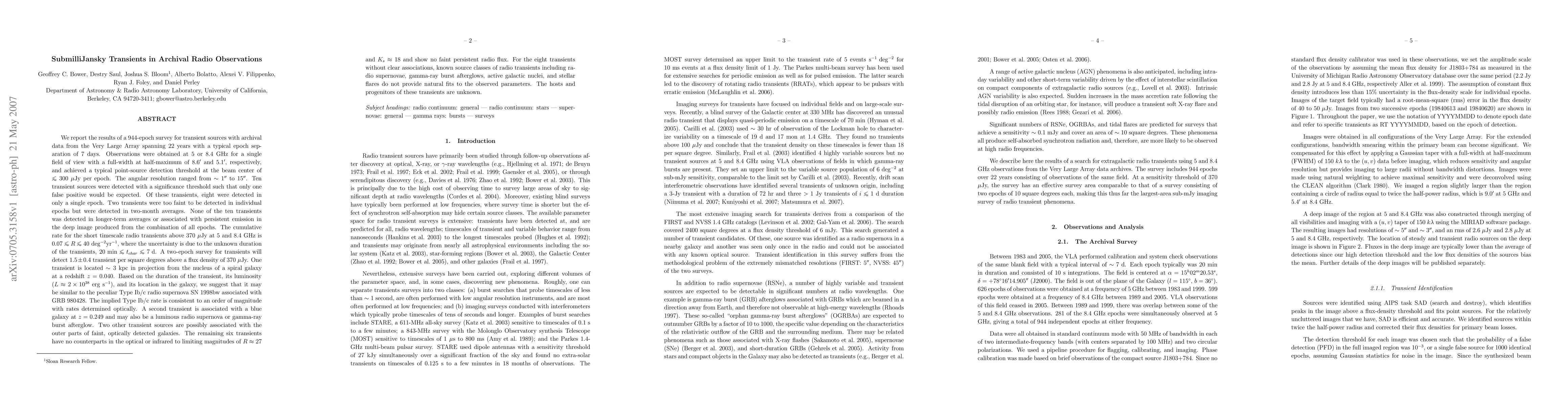 Researchers detected 10 submilliJanskys transients in archival radio observations over a 22-year period, with most undetected in individual epochs but some visible in two-month averages.