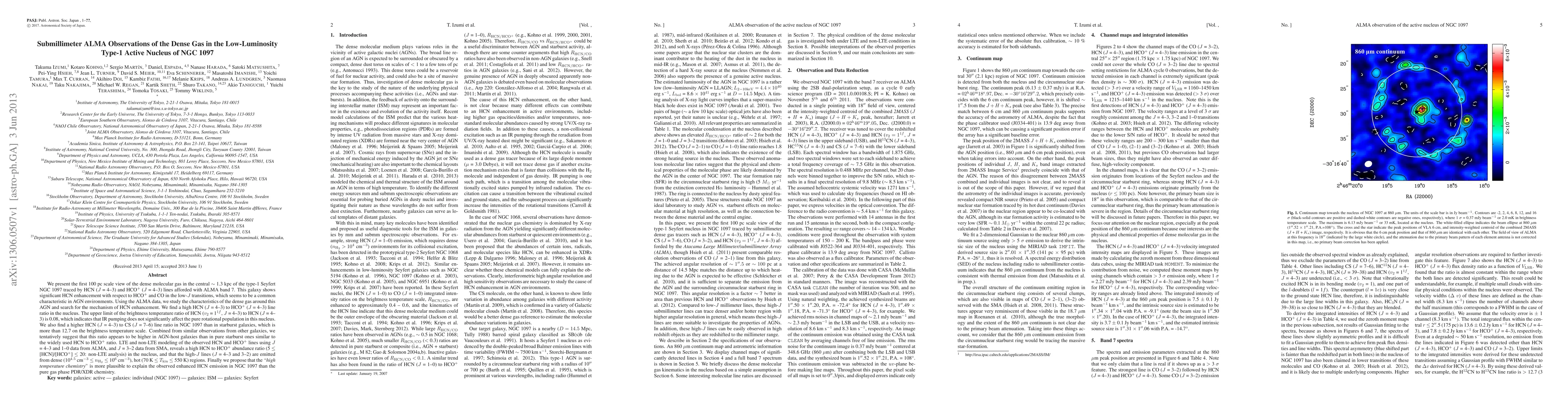 This study utilizes ALMA observations to investigate the dense molecular gas in the low-luminosity Type-1 AGN NGC 1097, revealing a significant HCN enhancement relative to HCO+ and CO. The findings suggest high-temperature chemistry rather than gas phase PDR/XDR processes as the cause for the enhanced HCN emission.
