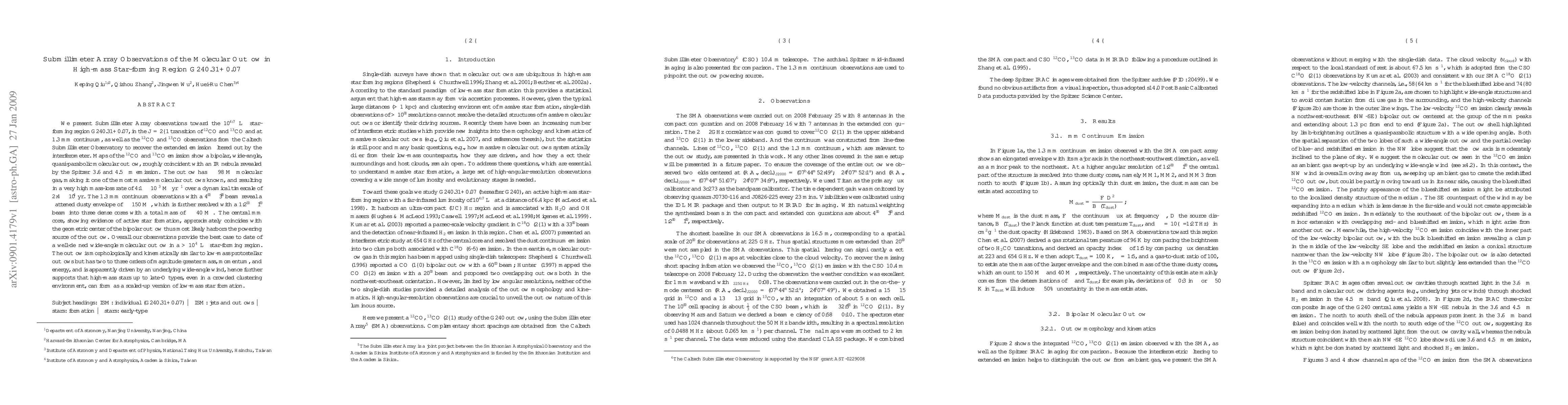 This paper reports on Submillimeter Array observations of the high-mass star-forming region G240.31+0.07, revealing a massive bipolar molecular outflow with ~98 Msun of gas and a high mass-loss rate. The outflow is driven by a central star-forming region, suggesting high-mass star formation as a scaled-up version of low-mass star formation.
