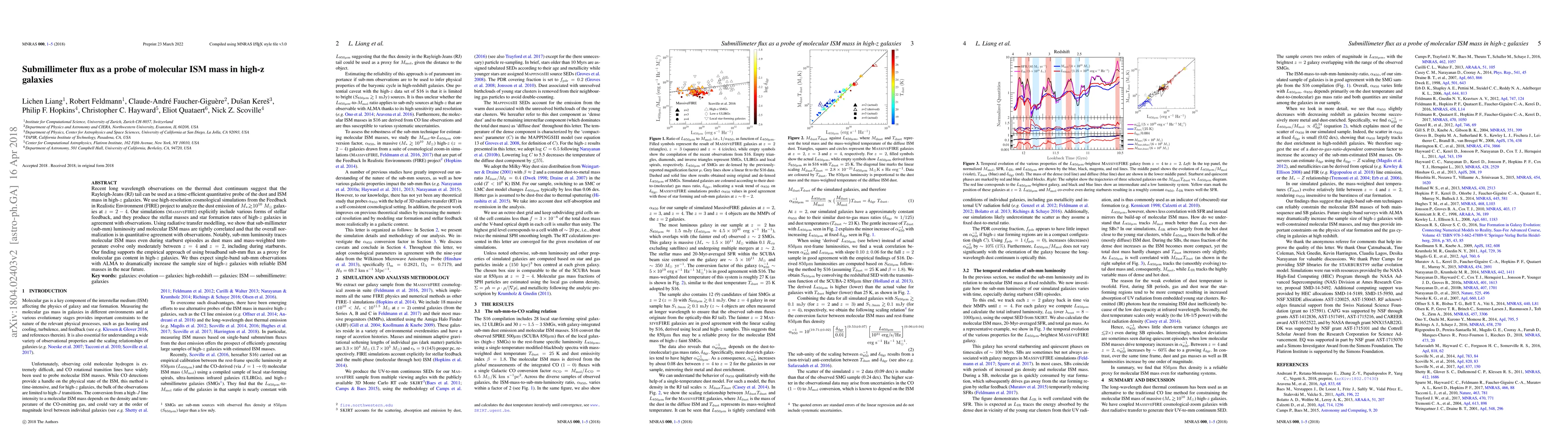 This paper demonstrates that submillimeter (sub-mm) flux is a reliable indicator of the molecular interstellar medium (ISM) mass in high-$z$ galaxies, based on simulations and radiative transfer modeling from the FIRE project. The study finds that sub-mm luminosity correlates strongly with molecular ISM mass, even during starbursts, suggesting that broadband sub-mm flux can serve as a proxy for molecular gas content in these galaxies.