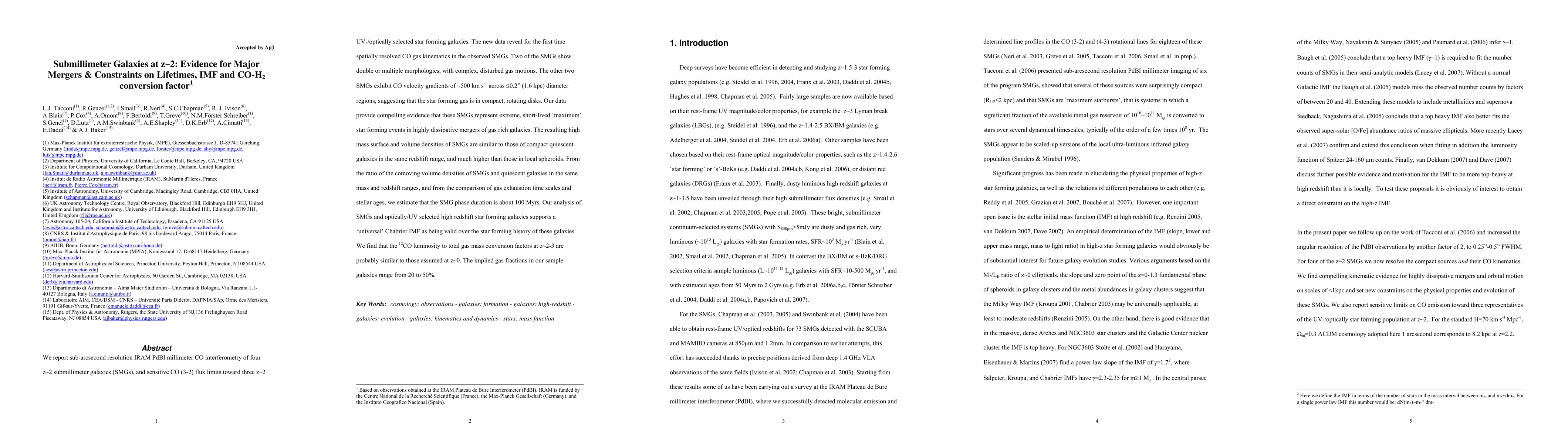 We report sub-arcsecond resolution IRAM PdBI millimeter CO interferometry of four z~2 submillimeter galaxies (SMGs), and sensitive CO (3-2) flux limits toward three z~2 UV-/optically selected star forming galaxies. The new data reveal for the first time spatially resolved CO gas kinematics in the observed SMGs. Two of the SMGs show double or multiple morphologies, with complex, disturbed gas motions. The other two SMGs exhibit CO velocity gradients of ~500 km/s across 0.2 arcsec (1.6 kpc) diameter regions, suggesting that the star forming gas is in compact, rotating disks. Our data provide compelling evidence that these SMGs represent extreme, short-lived 'maximum' star forming events in highly dissipative mergers of gas rich galaxies. The resulting high mass surface and volume densities of SMGs are similar to those of compact quiescent galaxies in the same redshift range, and much higher than those in local spheroids. From the ratio of the comoving volume densities of SMGs and quiescent galaxies in the same mass and redshift ranges, and from the comparison of gas exhaustion time scales and stellar ages, we estimate that the SMG phase duration is about 100 Myrs. Our analysis of SMGs and optically/UV selected high redshift star forming galaxies supports a 'universal' Chabrier IMF as being valid over the star forming history of these galaxies. We find that the 12CO luminosity to total gas mass conversion factors at z~2-3 are probably similar to those assumed at z~0. The implied gas fractions in our sample galaxies range from 20 to 50%.