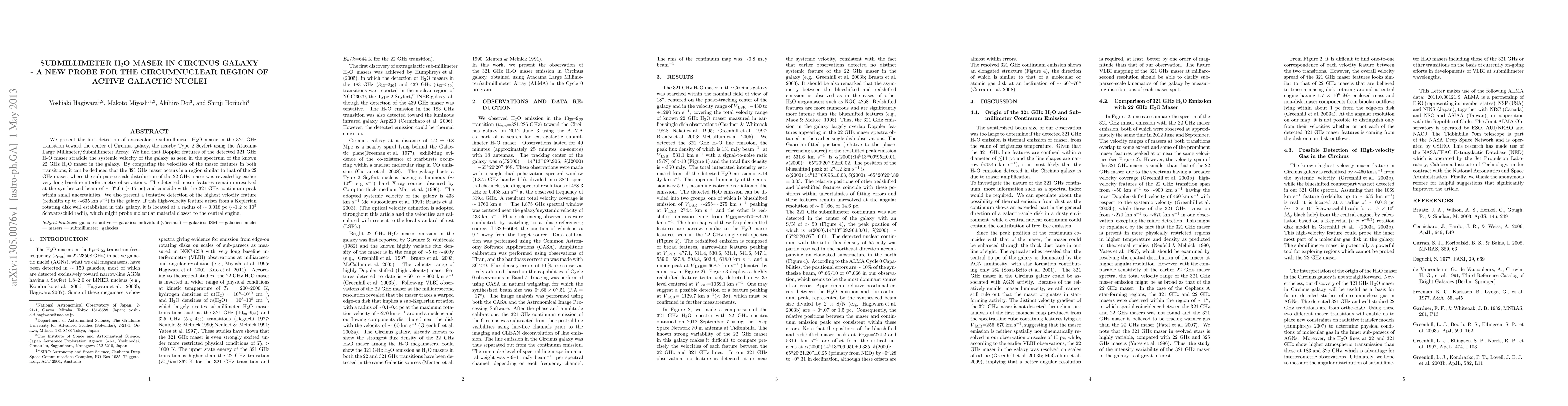 This paper reports the first detection of a submillimeter H2O maser in the Circinus galaxy, revealing Doppler features near the galaxy's systemic velocity. The maser's location coincides with the sub-parsec-scale region of the previously detected 22 GHz H2O maser, suggesting it probes the circumnuclear region near the active galactic nucleus.
