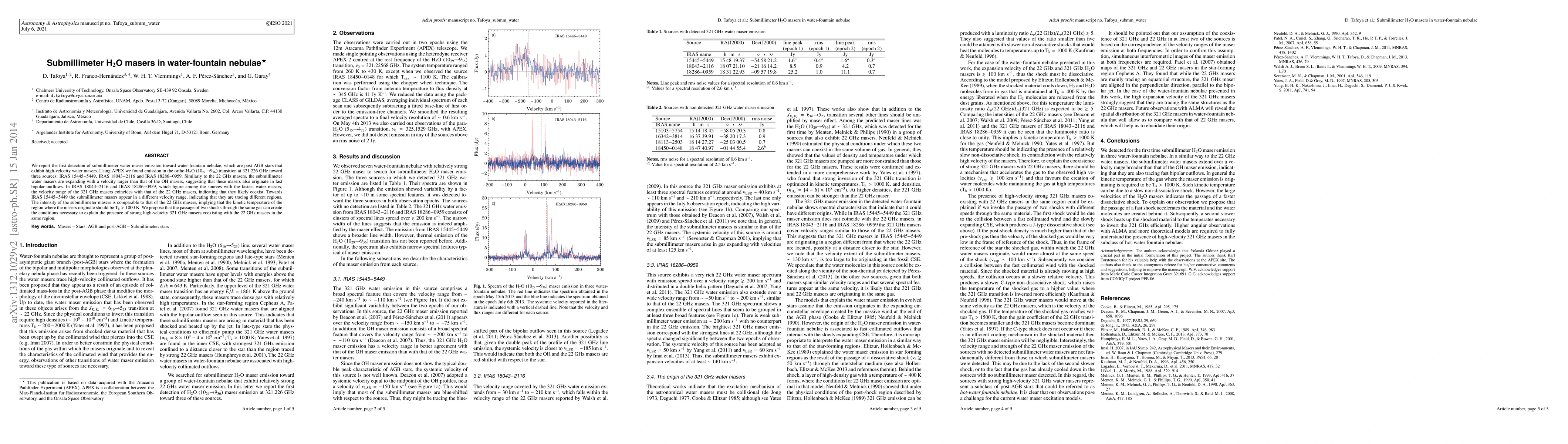 We report the first detection of submillimeter water maser emission toward water-fountain nebulae, which are post-AGB stars that exhibit high-velocity water masers. Using APEX we found emission in the ortho-H2O (10_29-9_36) transition at 321.226 GHz toward three sources: IRAS 15445-5449, IRAS 18043-2116 and IRAS 18286-0959. Similarly to the 22 GHz masers, the submillimeter water masers are expanding with a velocity larger than that of the OH masers, suggesting that these masers also originate in fast bipolar outflows. In IRAS 18043-2116 and IRAS 18286-0959, which figure among the sources with the fastest water masers, the velocity range of the 321 GHz masers coincides with that of the 22 GHz masers, indicating that they likely coexist. Towards IRAS 15445-5449 the submillimeter masers appear in a different velocity range, indicating that they are tracing different regions. The intensity of the submillimeter masers is comparable to that of the 22 GHz masers, implying that the kinetic temperature of the region where the masers originate should be Tk > 1000 K. We propose that the passage of two shocks through the same gas can create the conditions necessary to explain the presence of strong high-velocity 321 GHz masers coexisting with the 22 GHz masers in the same region.