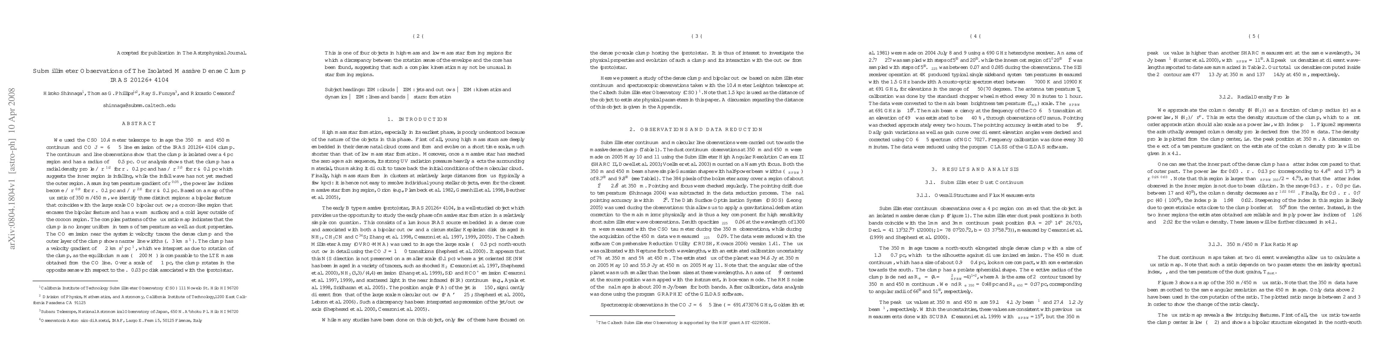 We used the CSO 10.4 meter telescope to image the 350 micron and 450 micron continuum and CO J=6-5 line emission of the IRAS 20126+4104 clump. The continuum and line observations show that the clump is isolated over a 4 pc region and has a radius of ~ 0.5 pc. Our analysis shows that the clump has a radial density profile propto r ^{-1.2} for r <~ 0.1 pc and has propto r^{-2.3} for r >~ 0.1 pc which suggests the inner region is infalling, while the infall wave has not yet reached the outer region. Assuming temperature gradient of r^{-0.35}, the power law indices become propto r ^{-0.9} for r < ~0.1 pc and propto r^{-2.0} for r >~ 0.1 pc. Based on a map of the flux ratio of 350micron/450micron, we identify three distinct regions: a bipolar feature that coincides with the large scale CO bipolar outflow; a cocoon-like region that encases the bipolar feature and has a warm surface; and a cold layer outside of the cocoon region. The complex patterns of the flux ratio map indicates that the clump is no longer uniform in terms of temperature as well as dust properties. The CO emission near the systemic velocity traces the dense clump and the outer layer of the clump shows narrow line widths (< ~3 km/s). The clump has a velocity gradient of ~ 2 km/s pc^{-1}, which we interpret as due to rotation of the clump, as the equilibrium mass (~ 200 Msun) is comparable to the LTE mass obtained from the CO line. Over a scale of ~ 1 pc, the clump rotates in the opposite sense with respect to the >~ 0.03 pc disk associated with the (proto)star. This is one of four objects in high-mass and low-mass star forming regions for which a discrepancy between the rotation sense of the envelope and the core has been found, suggesting that such a complex kinematics may not be unusual in star forming regions.