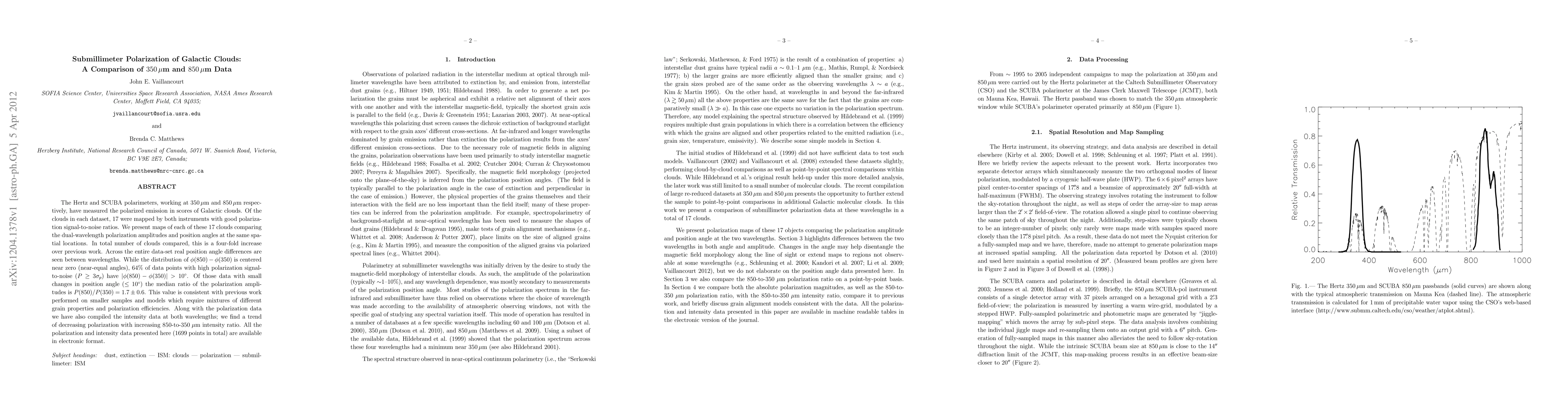 The Hertz and SCUBA polarimeters, working at 350 micron and 850 micron respectively, have measured the polarized emission in scores of Galactic clouds. Of the clouds in each dataset, 17 were mapped by both instruments with good polarization signal-to-noise ratios. We present maps of each of these 17 clouds comparing the dual-wavelength polarization amplitudes and position angles at the same spatial locations. In total number of clouds compared, this is a four-fold increase over previous work. Across the entire data-set real position angle differences are seen between wavelengths. While the distribution of \phi(850)-\phi(350) is centered near zero (near-equal angles), 64% of data points with high polarization signal-to-noise (P >= 3\sigma_p) have |\phi(850)-\phi(350)| > 10 degrees. Of those data with small changes in position angle (<= 10 degrees) the median ratio of the polarization amplitudes is P(850)/P(350) = 1.7 +/- 0.6. This value is consistent with previous work performed on smaller samples and models which require mixtures of different grain properties and polarization efficiencies. Along with the polarization data we have also compiled the intensity data at both wavelengths; we find a trend of decreasing polarization with increasing 850-to-350 micron intensity ratio. All the polarization and intensity data presented here (1699 points in total) are available in electronic format.