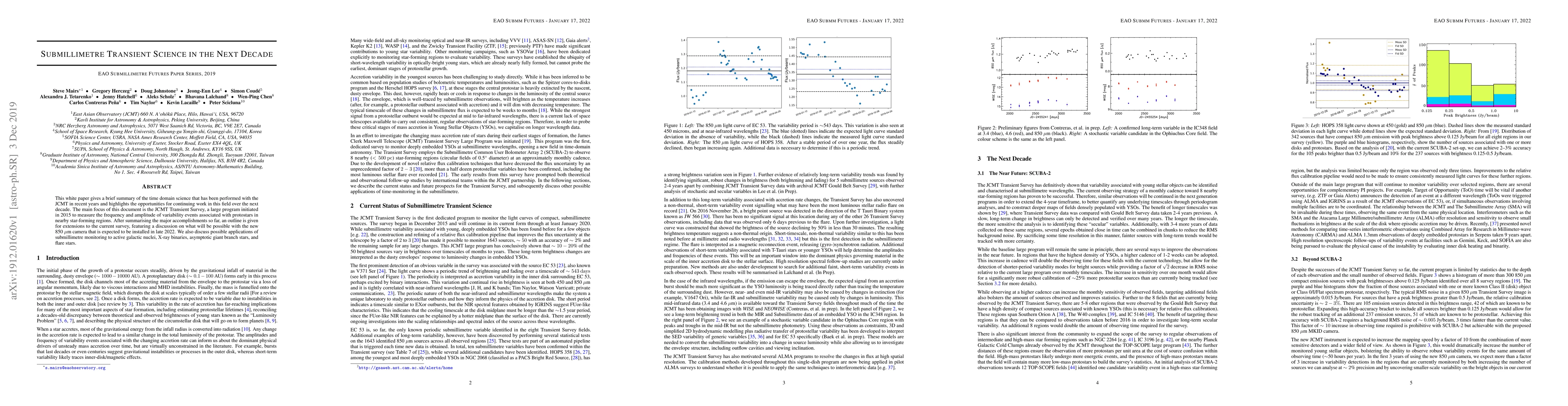 This white paper gives a brief summary of the time domain science that has been performed with the JCMT in recent years and highlights the opportunities for continuing work in this field over the next decade. The main focus of this document is the JCMT Transient Survey, a large program initiated in 2015 to measure the frequency and amplitude of variability events associated with protostars in nearby star-forming regions. After summarising the major accomplishments so far, an outline is given for extensions to the current survey, featuring a discussion on what will be possible with the new 850 micron camera that is expected to be installed in late 2022. We also discuss possible applications of submillimetre monitoring to active galactic nuclei, X-ray binaries, asymptotic giant branch stars, and flare stars.