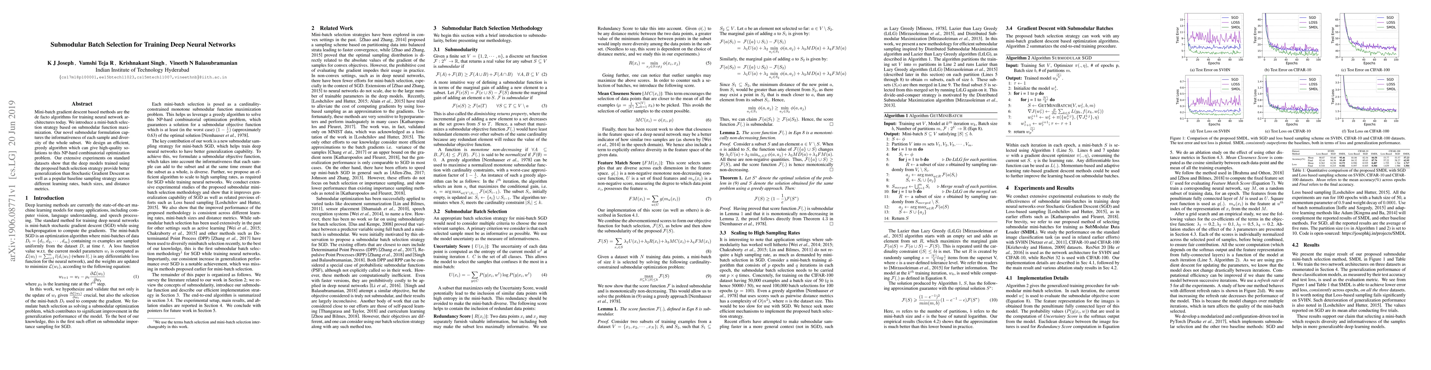 This paper proposes a submodular batch selection strategy for training deep neural networks, using a greedy algorithm to maximize informativeness and diversity in mini-batches. Experiments demonstrate improved generalization over Stochastic Gradient Descent and baseline methods.