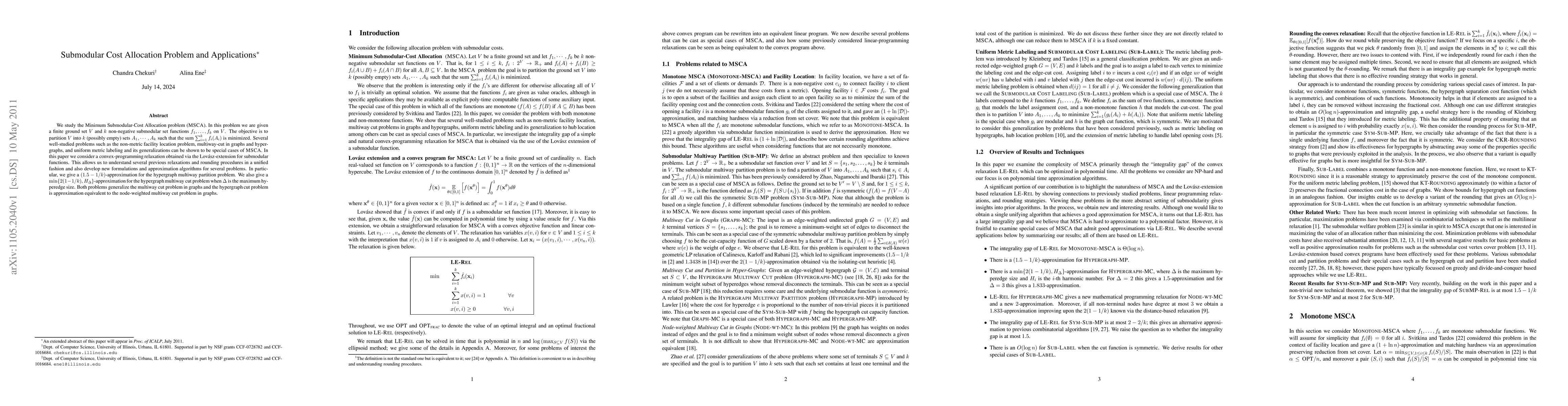 This paper studies the Minimum Submodular-Cost Allocation problem (MSCA) and develops a convex-programming relaxation using the Lovász-extension. It provides new approximation algorithms, including a $(1.5 - 1/k)$-approximation for the hypergraph multiway partition problem and a $\min\{2(1-1/k), H_{\Delta}\}$-approximation for the hypergraph multiway cut problem.