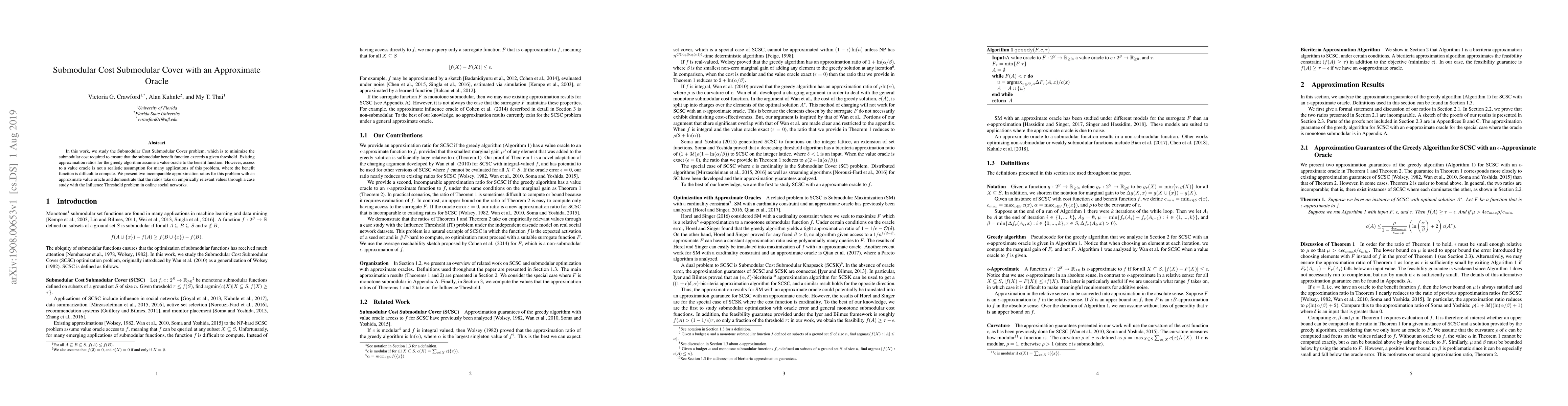 This paper addresses the Submodular Cost Submodular Cover problem, proposing approximation ratios for the greedy algorithm when an approximate value oracle is used instead of a precise one. The study demonstrates these ratios' practical relevance through a case study on the Influence Threshold problem in online social networks.