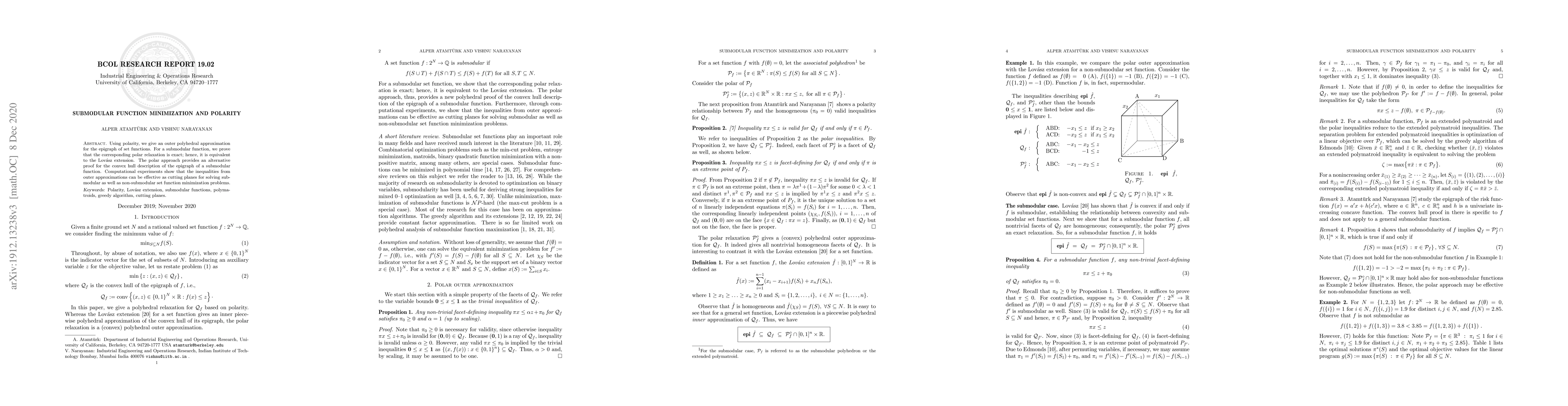 This paper presents an outer polyhedral approximation for the epigraph of set functions using polarity, proving exactness for submodular functions and equivalence to the Lovász extension. Computational experiments demonstrate the effectiveness of these approximations as cutting planes for solving both submodular and non-submodular set function minimization problems.