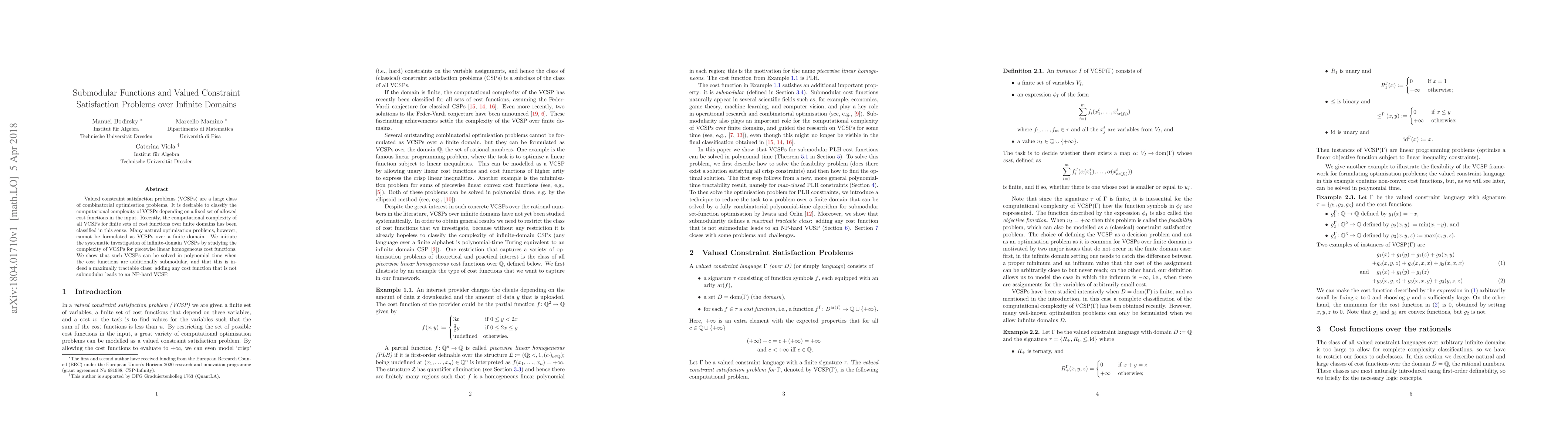 Valued constraint satisfaction problems (VCSPs) are a large class of combinatorial optimisation problems. It is desirable to classify the computational complexity of VCSPs depending on a fixed set of allowed cost functions in the input. Recently, the computational complexity of all VCSPs for finite sets of cost functions over finite domains has been classified in this sense. Many natural optimisation problems, however, cannot be formulated as VCSPs over a finite domain. We initiate the systematic investigation of infinite-domain VCSPs by studying the complexity of VCSPs for piecewise linear homogeneous cost functions. We show that such VCSPs can be solved in polynomial time when the cost functions are additionally submodular, and that this is indeed a maximally tractable class: adding any cost function that is not submodular leads to an NP-hard VCSP.