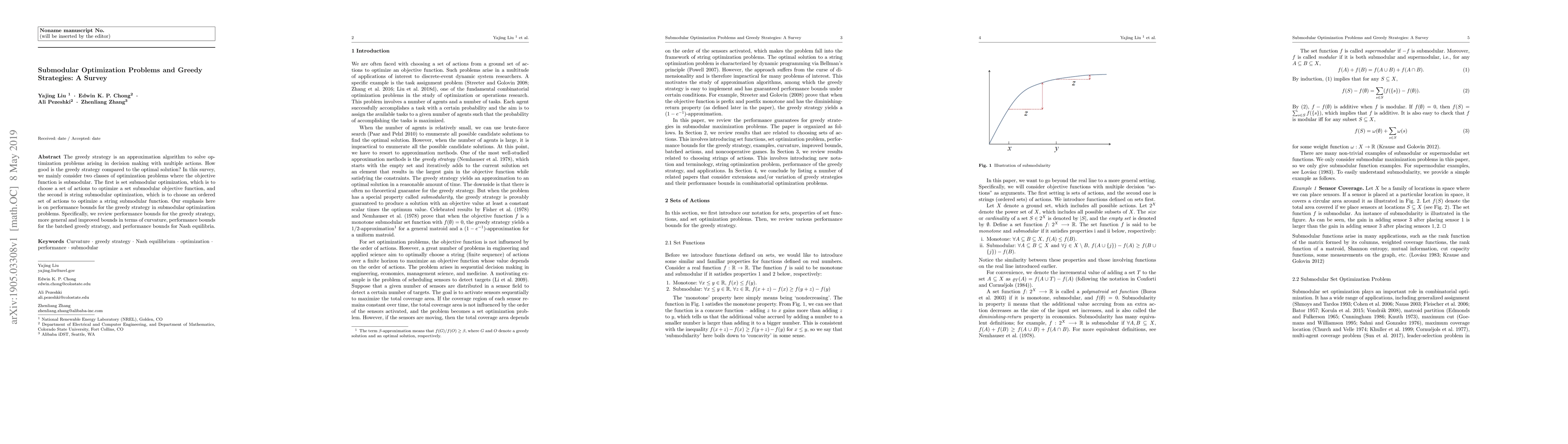 This survey examines the performance of the greedy strategy in solving submodular optimization problems, focusing on set and string submodular optimization. It reviews various performance bounds, including those for the batched greedy strategy and Nash equilibria, highlighting improvements in terms of curvature.