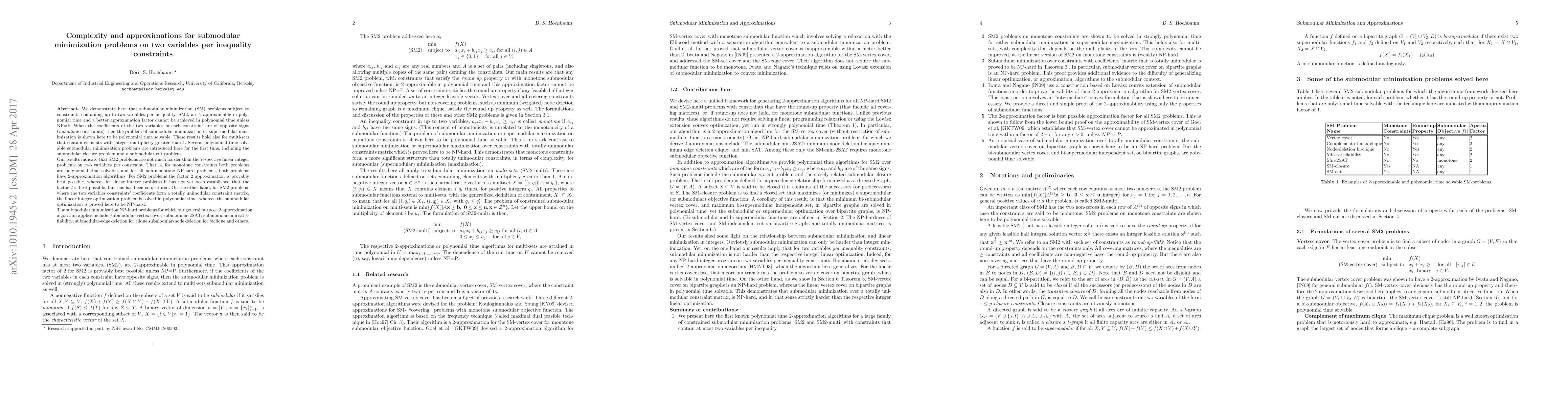 This paper shows that submodular minimization problems with linear constraints can be approximated in polynomial time, offering a 2-approximation for many NP-hard problems, including vertex cover and clique deletion.