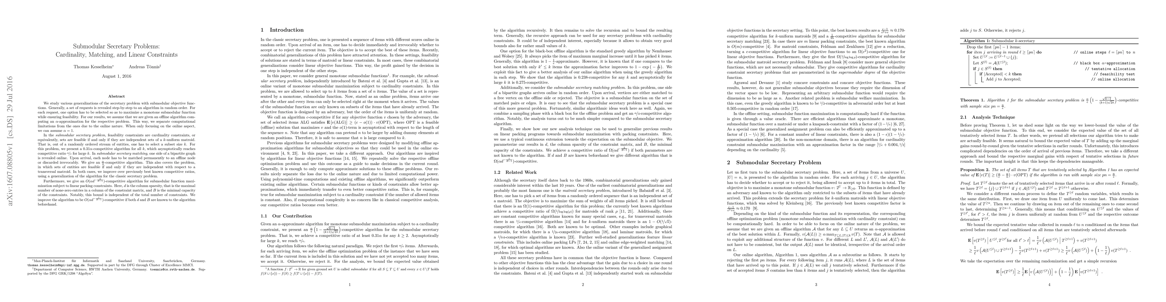 This paper explores various extensions of the secretary problem with submodular objectives under different constraints. It presents improved competitive algorithms for cardinality-constrained submodular selection, submodular matching, and submodular function maximization under linear packing constraints, achieving better competitive ratios than previous methods.
