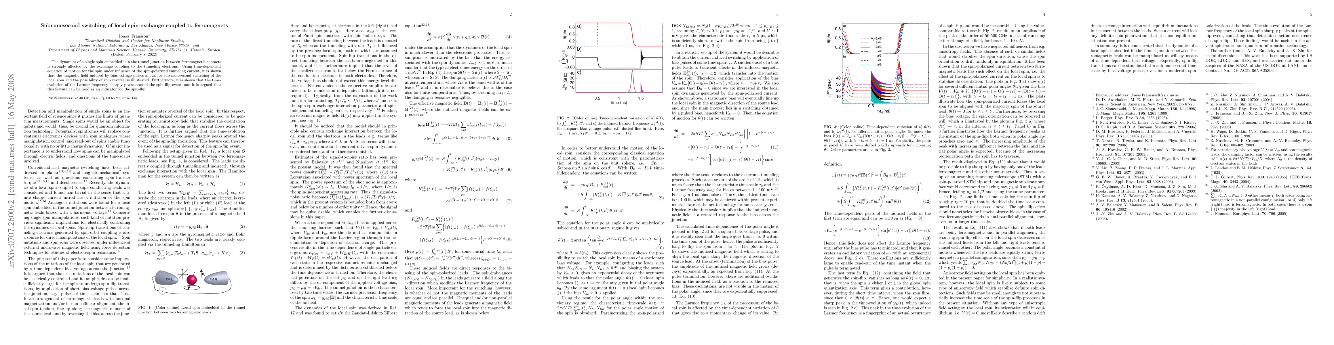 Researchers demonstrate subnanosecond switching of a single spin in a ferromagnet using bias voltage pulses, which can reverse the spin direction. This phenomenon has implications for ultrafast spin manipulation and potential applications in spintronics.