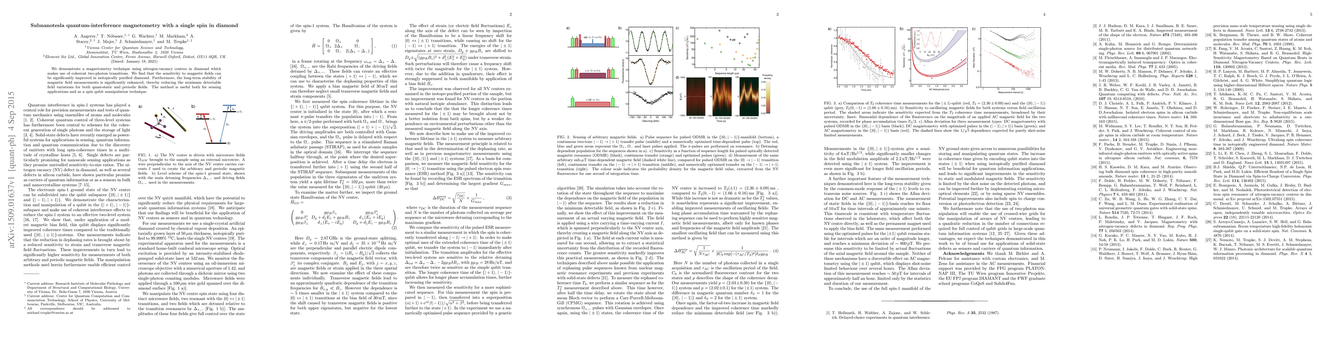 This paper presents a highly sensitive magnetometry technique using nitrogen-vacancy centres in isotopically purified diamond, achieving subnanotesla detection of magnetic fields. The method enhances long-term stability and is applicable for both sensing and spin qubit manipulation.