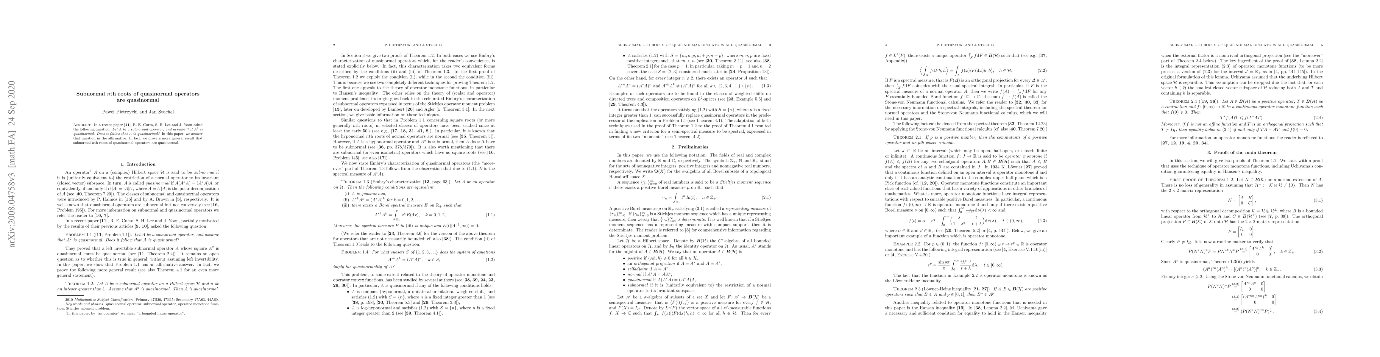 This paper affirms that if a subnormal operator $A$ satisfies $A^2$ being quasinormal, then $A$ itself is quasinormal. It further extends this result to show that subnormal $n$th roots of quasinormal operators are also quasinormal.