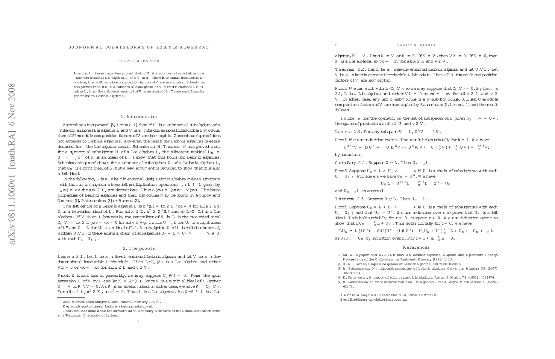 Zassenhaus has proved that if U is a subnormal subalgebra of a finite-dimensional Lie algebra L and V is a finite-dimensional irreducible L-module, then all U-module composition factors of V are isomorphic. Schenkman has proved that if U is a subnormal subalgebra of a finite-dimensional Lie algebra L, then the nilpotent residual of U is an ideal of L. These useful results generalise to Leibniz algebras.