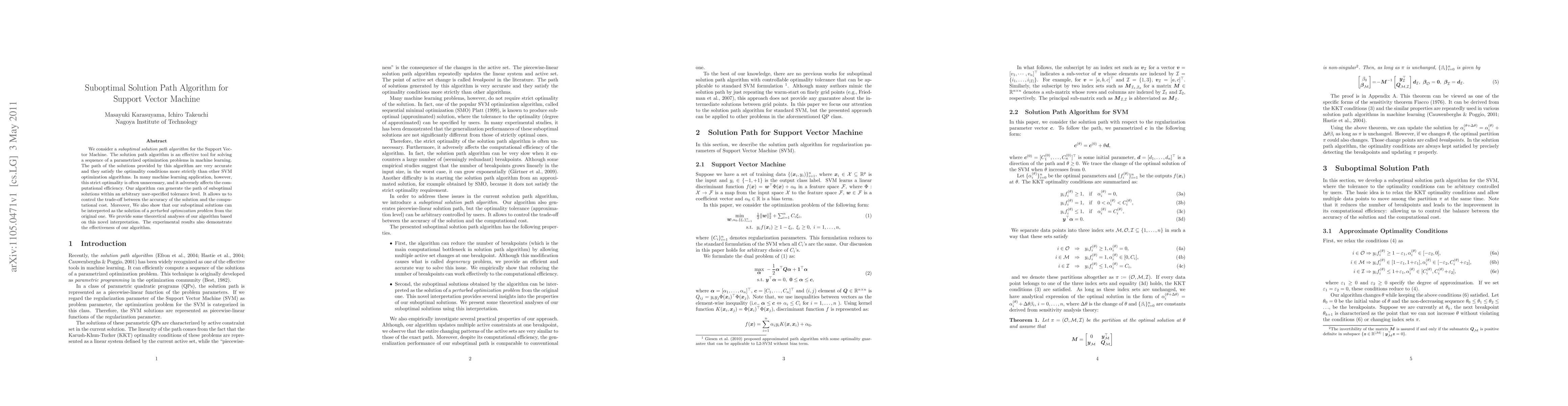 This paper proposes a suboptimal solution path algorithm for Support Vector Machines that generates accurate solutions within a user-specified tolerance, balancing solution accuracy and computational efficiency. The authors provide theoretical analysis and demonstrate that suboptimal solutions can be seen as solutions to a perturbed optimization problem, supported by experimental results.