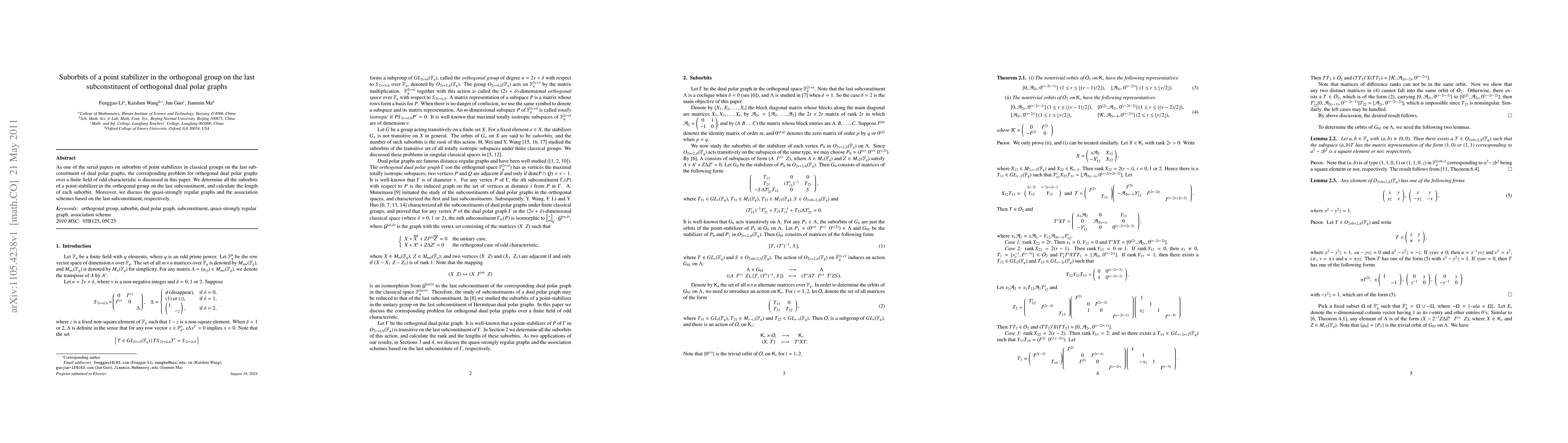 This paper identifies and analyzes all suborbits of a point stabilizer in the orthogonal group acting on the last subconstituent of orthogonal dual polar graphs over a finite field with odd characteristic, calculating the length of each suborbit and exploring quasi-strongly regular graphs and association schemes based on this subconstituent.