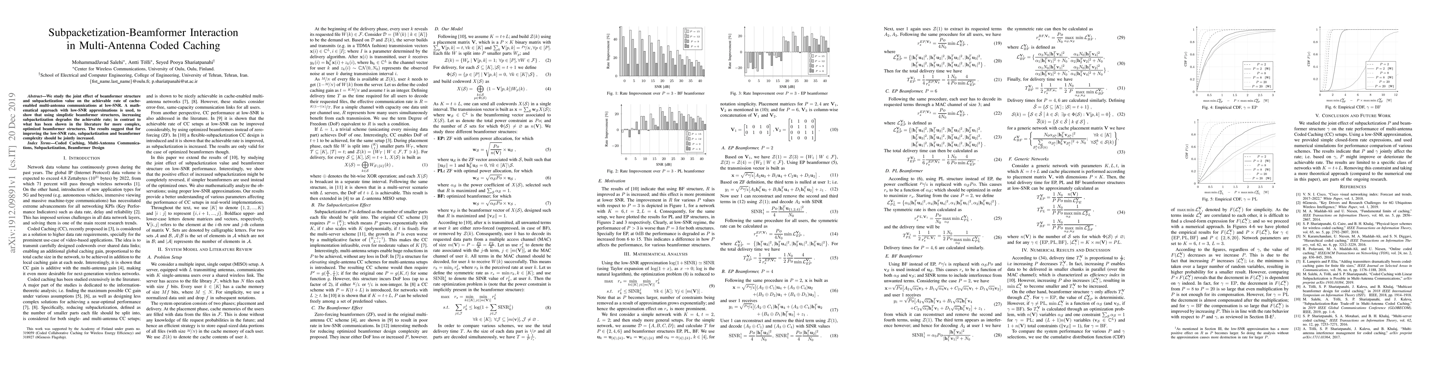 This research contributes to our understanding of the trade-offs involved in multi-antenna coded caching and highlights the importance of considering both subpacketization and beamformer structure.