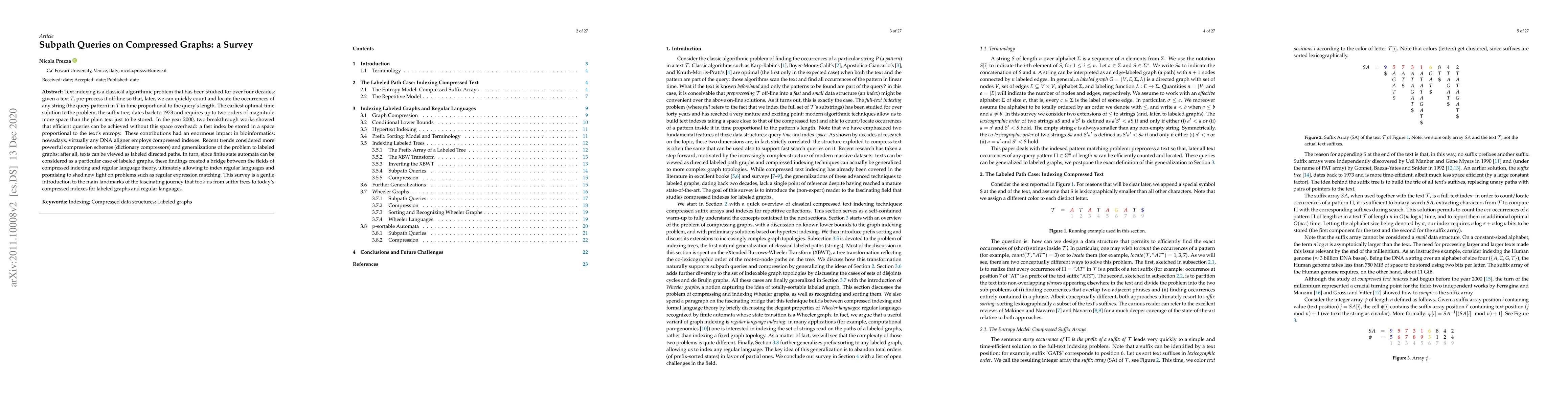 Text indexing is a classical algorithmic problem that has been studied for over four decades: given a text $T$, pre-process it off-line so that, later, we can quickly count and locate the occurrences of any string (the query pattern) in $T$ in time proportional to the query's length. The earliest optimal-time solution to the problem, the suffix tree, dates back to 1973 and requires up to two orders of magnitude more space than the plain text just to be stored. In the year 2000, two breakthrough works showed that efficient queries can be achieved without this space overhead: a fast index be stored in a space proportional to the text's entropy. These contributions had an enormous impact in bioinformatics: nowadays, virtually any DNA aligner employs compressed indexes. Recent trends considered more powerful compression schemes (dictionary compressors) and generalizations of the problem to labeled graphs: after all, texts can be viewed as labeled directed paths. In turn, since finite state automata can be considered as a particular case of labeled graphs, these findings created a bridge between the fields of compressed indexing and regular language theory, ultimately allowing to index regular languages and promising to shed new light on problems such as regular expression matching. This survey is a gentle introduction to the main landmarks of the fascinating journey that took us from suffix trees to today's compressed indexes for labeled graphs and regular languages.