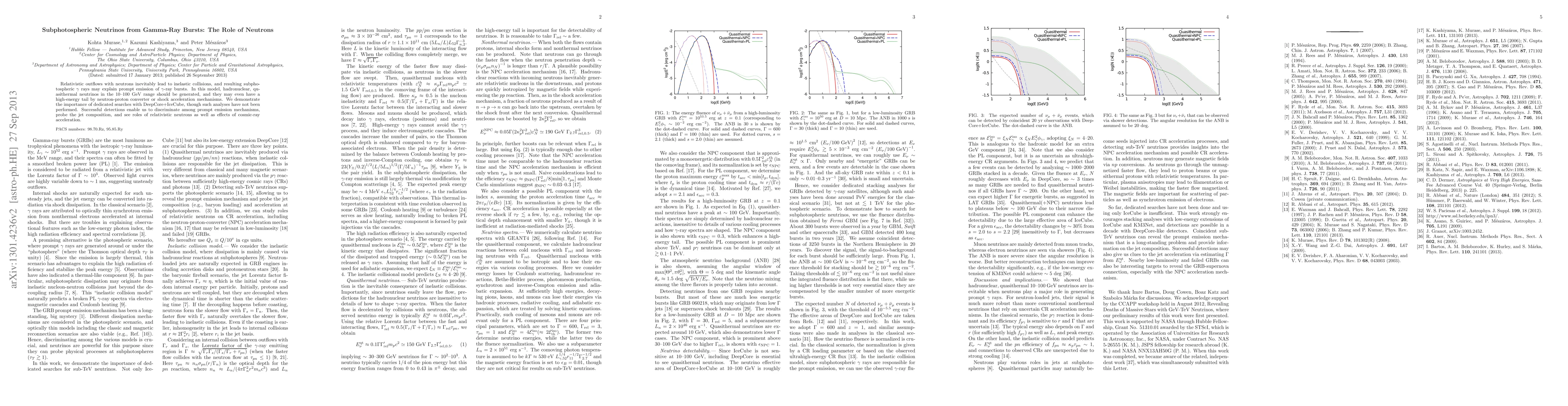 Relativistic outflows with neutrons inevitably lead to inelastic collisions, and resulting subphotospheric gamma rays may explain prompt emission of gamma-ray bursts. In this model, hadronuclear, quasithermal neutrinos in the 10-100 GeV range should be generated, and they may even have a high-energy tail by neutron-proton-converter or shock acceleration mechanisms. We demonstrate the importance of dedicated searches with DeepCore+IceCube, though such analyses have not been performed. Successful detections enable us to discriminate among prompt emission mechanisms, probe the jet composition, and see roles of relativistic neutrons as well as effects of cosmic-ray acceleration.