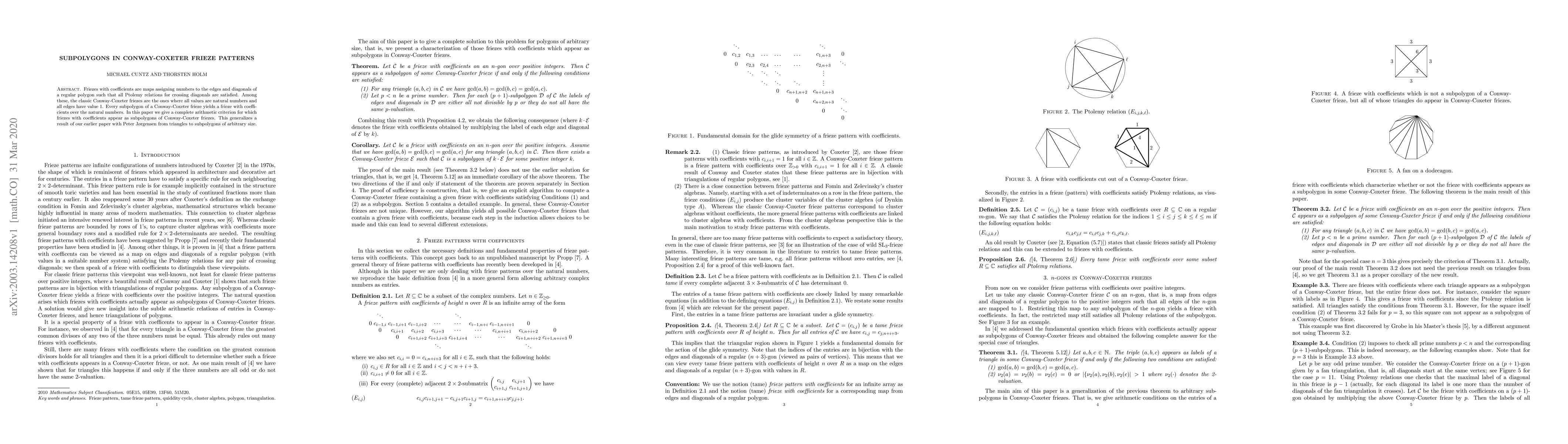Friezes with coefficients are maps assigning numbers to the edges and diagonals of a regular polygon such that all Ptolemy relations for crossing diagonals are satisfied. Among these, the classic Conway-Coxeter friezes are the ones where all values are natural numbers and all edges have value 1. Every subpolygon of a Conway-Coxeter frieze yields a frieze with coefficients over the natural numbers. In this paper we give a complete arithmetic criterion for which friezes with coefficients appear as subpolygons of Conway-Coxeter friezes. This generalizes a result of our earlier paper with Peter Jorgensen from triangles to subpolygons of arbitrary size.