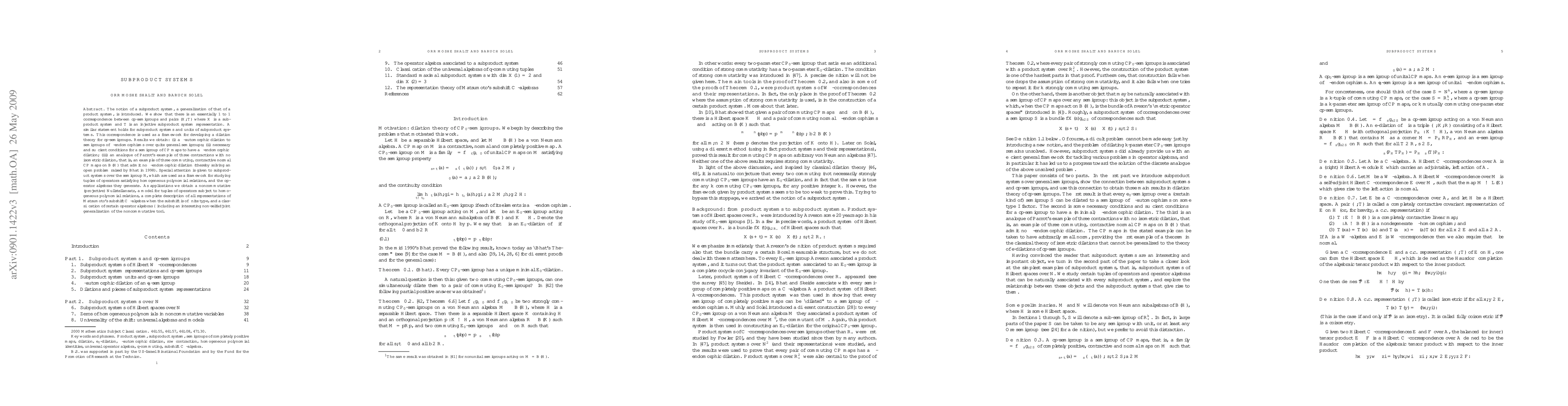 The paper introduces the concept of subproduct systems, establishing a correspondence between cp-semigroups and pairs involving subproduct systems and injective representations. It develops dilation theory for cp-semigroups, providing results on *-automorphic dilations, necessary conditions for dilation, and a solution to an open problem regarding the lack of *-endomorphic dilation for certain tuples of operators.