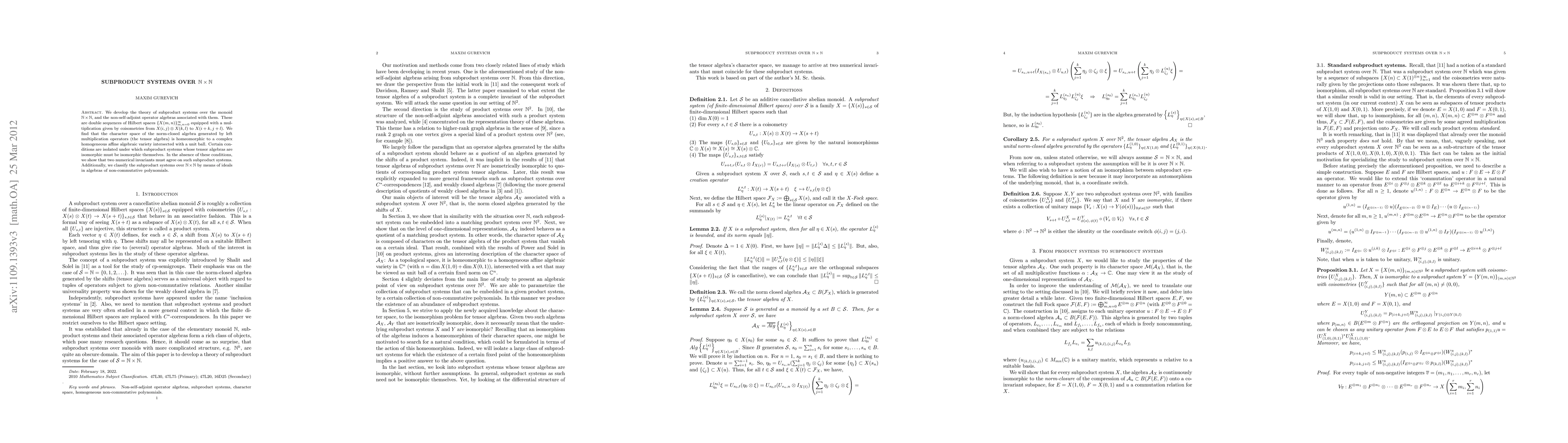 We develop the theory of subproduct systems over the monoid $\mathbb{N}\times \mathbb{N}$, and the non-self-adjoint operator algebras associated with them. These are double sequences of Hilbert spaces $\{X(m,n)\}_{m,n=0}^\infty$ equipped with a multiplication given by coisometries from $X(i,j)\otimes X(k,l)$ to $X(i+k, j+l)$. We find that the character space of the norm-closed algebra generated by left multiplication operators (the tensor algebra) is homeomorphic to a Euclidean homogeneous algebraic variety intersected with a unit ball. Certain conditions are isolated under which subproduct systems whose tensor algebras are isomorphic must be isomorphic themselves. In the absence of these conditions, we show that two numerical invariants must agree on such subproduct systems. Additionally, we classify the subproduct systems over $\mathbb{N}\times \mathbb{N}$ by means of ideals in algebras of non-commutative polynomials.