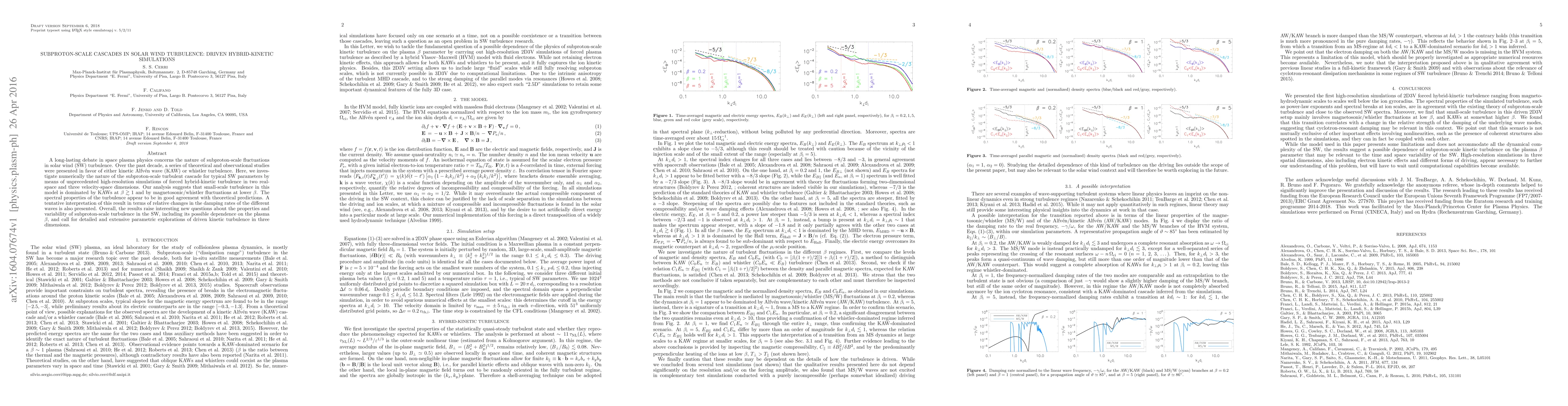 A long-lasting debate in space plasma physics concerns the nature of subproton-scale fluctuations in solar wind (SW) turbulence. Over the past decade, a series of theoretical and observational studies were presented in favor of either kinetic Alfv\'en wave (KAW) or whistler turbulence. Here, we investigate numerically the nature of the subproton-scale turbulent cascade for typical SW parameters by means of unprecedented high-resolution simulations of forced hybrid-kinetic turbulence in two real-space and three velocity-space dimensions. Our analysis suggests that small-scale turbulence in this model is dominated by KAWs at $\beta\gtrsim1$ and by magnetosonic/whistler fluctuations at lower $\beta$. The spectral properties of the turbulence appear to be in good agreement with theoretical predictions. A tentative interpretation of this result in terms of relative changes in the damping rates of the different waves is also presented. Overall, the results raise interesting new questions about the properties and variability of subproton-scale turbulence in the SW, including its possible dependence on the plasma $\beta$, and call for detailed and extensive parametric explorations of driven kinetic turbulence in three dimensions.