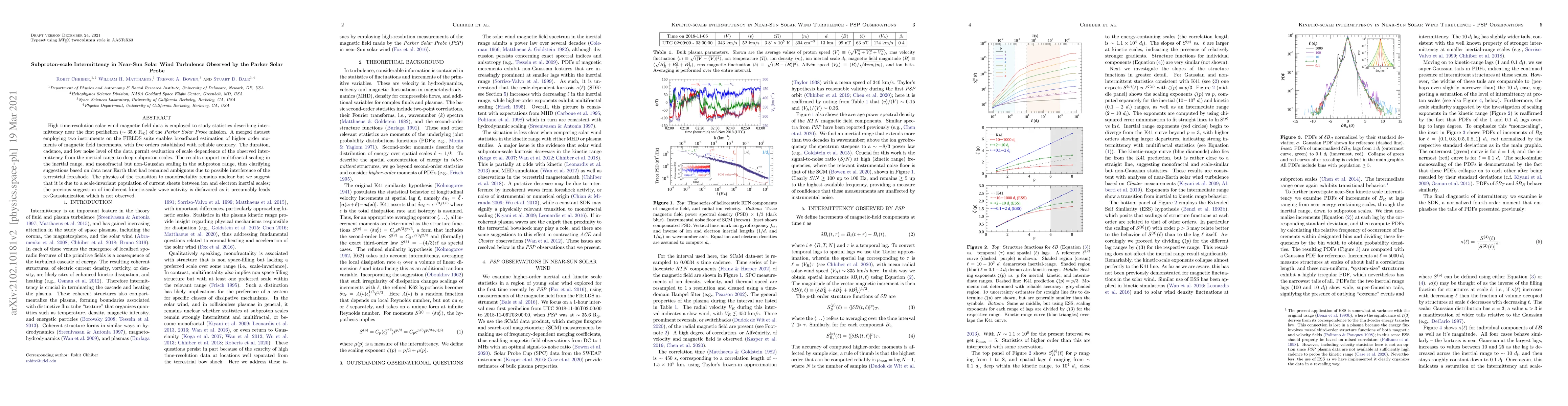 This study uses high-resolution solar wind data from the Parker Solar Probe to analyze intermittency in turbulence near the Sun, revealing multifractal scaling in the inertial range and monofractal but non-Gaussian scaling in the subproton range. The findings suggest a transition due to scale-invariant current sheets, refuting previous theories of incoherent kinetic-scale wave activity.