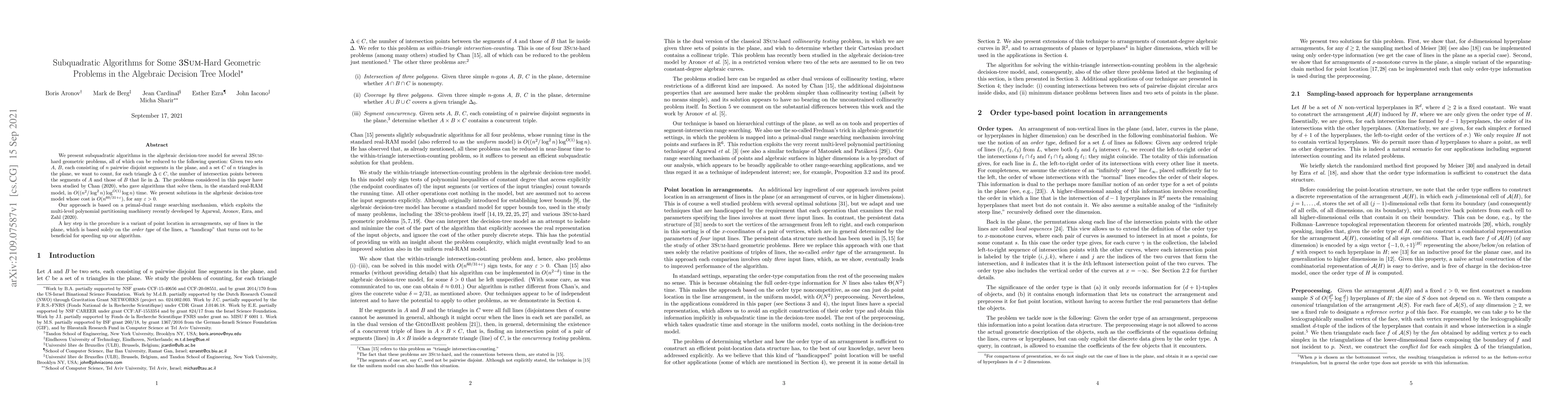 Researchers have created subquadratic algorithms for solving geometric problems in the algebraic decision tree model, improving upon existing solutions that take $O(n^2/ ext{log}^2 n)$ time.