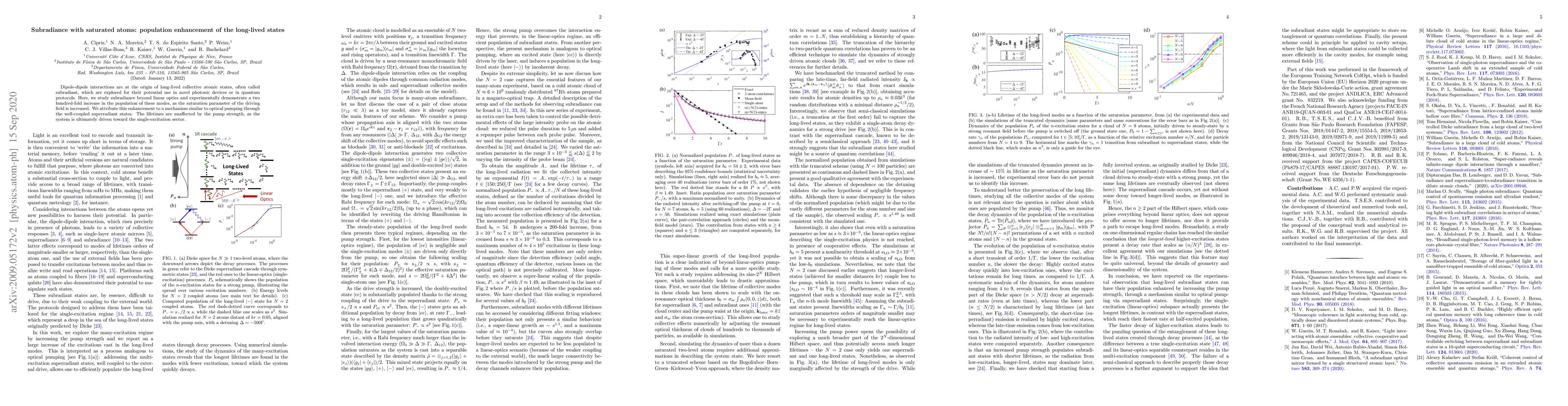 This paper explores enhanced population in subradiant atomic states via dipole-dipole interactions, demonstrating a 200-fold increase in these states' population through saturation, akin to optical pumping, without affecting their lifetimes.