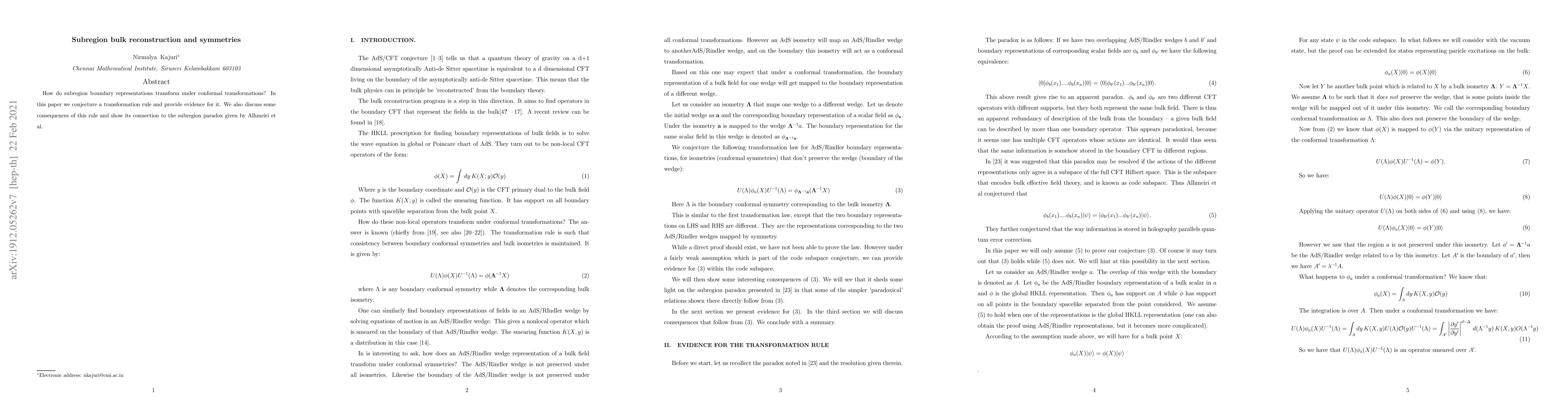 How do subregion boundary representations transform under conformal transformations? In this paper we conjecture a transformation rule and provide evidence for it. We also show how this transformation rule helps mitigate the subregion reconstruction paradox presented by Alhmeiri et al.