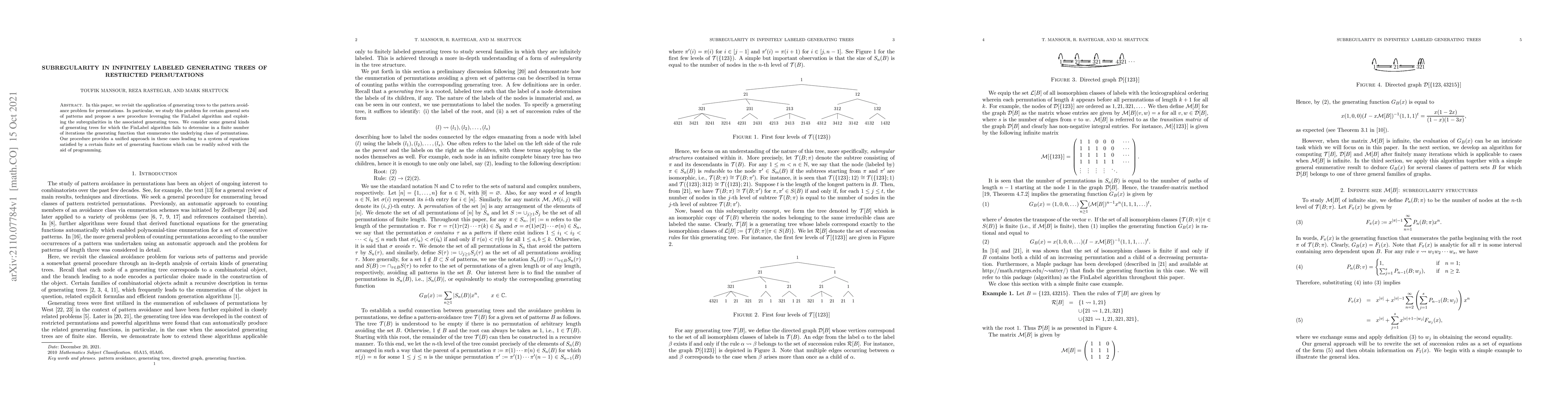 This paper proposes a new method using generating trees and the FinLabel algorithm to solve pattern avoidance problems for restricted permutations, addressing cases where the FinLabel algorithm fails by leveraging subregularities and resulting in a solvable system of equations.