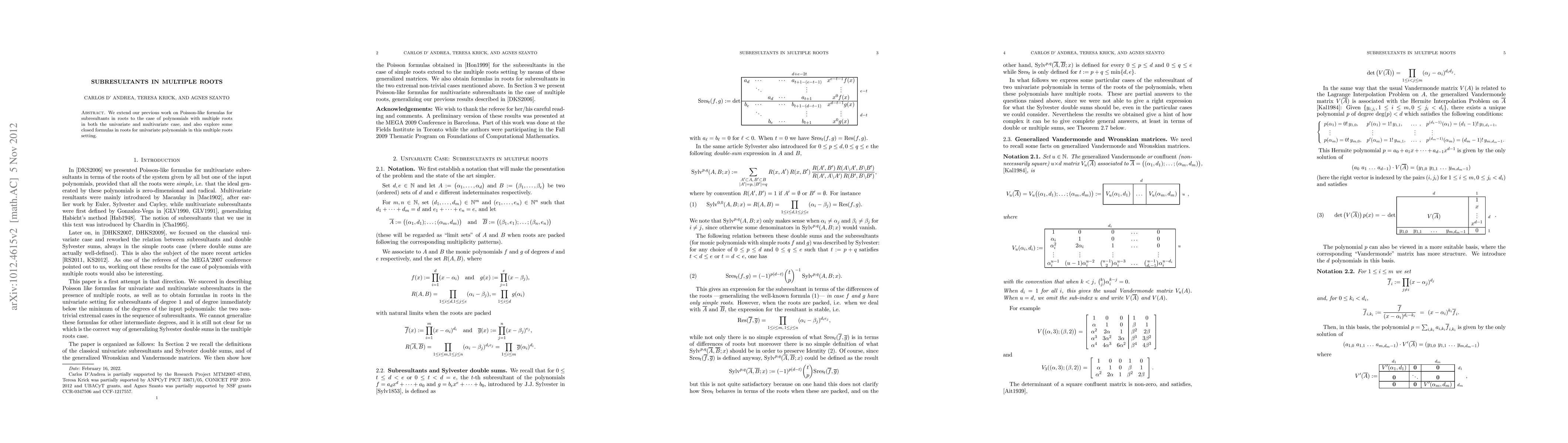 This paper extends previous research on subresultants for polynomials with multiple roots, providing new Poisson-like formulas for both univariate and multivariate cases. It also introduces closed formulas for univariate polynomials in the context of multiple roots.