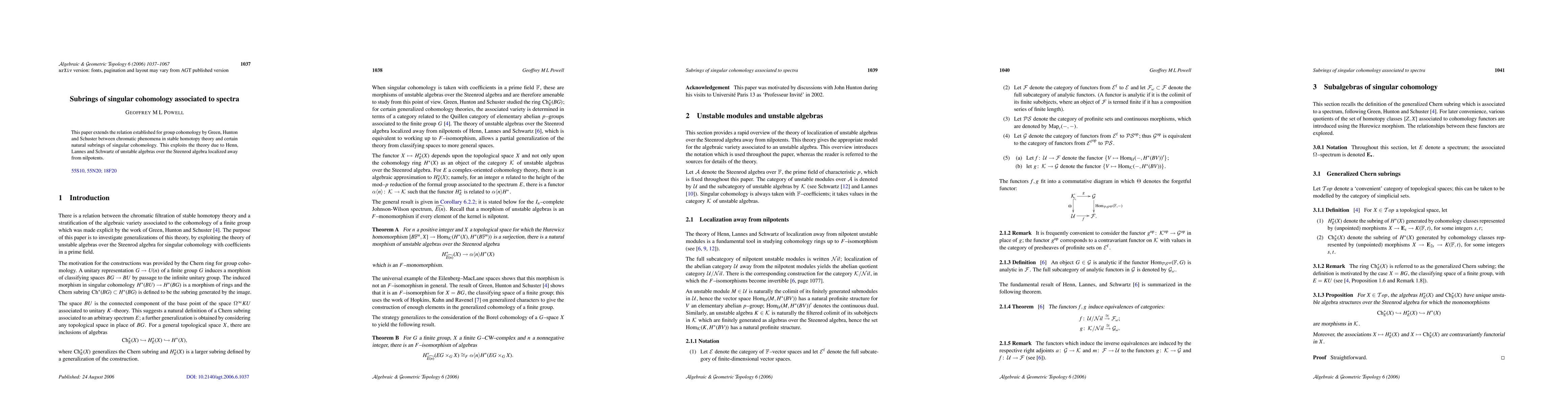 This paper extends the relation established for group cohomology by Green, Hunton and Schuster between chromatic phenomena in stable homotopy theory and certain natural subrings of singular cohomology. This exploits the theory due to Henn, Lannes and Schwartz of unstable algebras over the Steenrod algebra localized away from nilpotents.