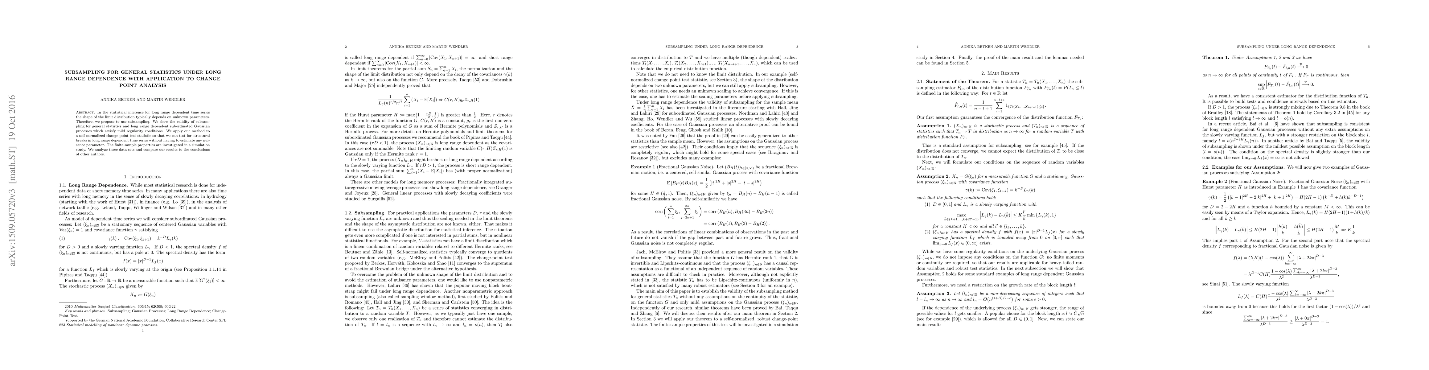 This paper proposes subsampling for statistical inference in long range dependent time series, demonstrating its validity for general statistics and Gaussian processes. The method is applied to a self-normalized change-point test, allowing for structural break detection without nuisance parameter estimation, and is validated through simulations and real data comparisons.