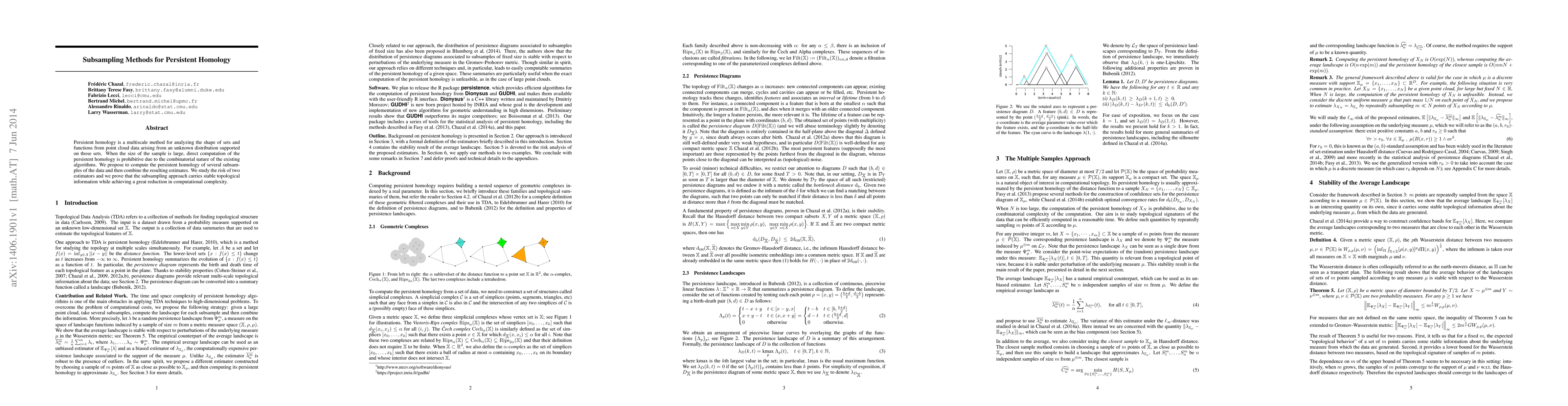This paper proposes a subsampling method to efficiently compute persistent homology from large point cloud datasets, combining estimates from multiple subsamples to achieve stable topological information with significantly reduced computational complexity. The approach ensures reliable results despite the large sample size.