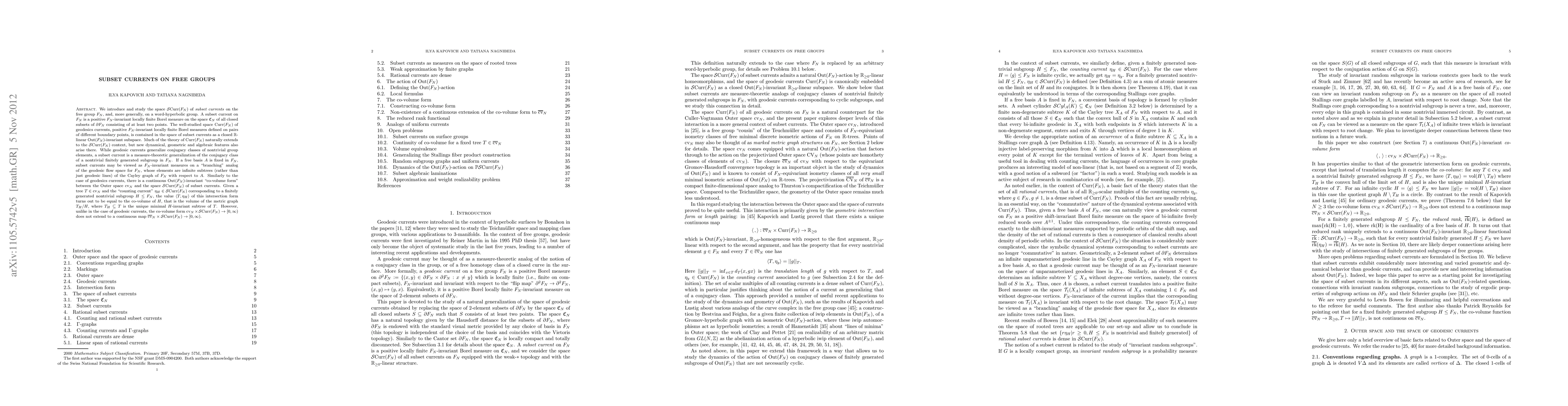 We introduce and study the space of \emph{subset currents} on the free group $F_N$. A subset current on $F_N$ is a positive $F_N$-invariant locally finite Borel measure on the space $\mathfrak C_N$ of all closed subsets of $\partial F_N$ consisting of at least two points. While ordinary geodesic currents generalize conjugacy classes of nontrivial group elements, a subset current is a measure-theoretic generalization of the conjugacy class of a nontrivial finitely generated subgroup in $F_N$, and, more generally, in a word-hyperbolic group. The concept of a subset current is related to the notion of an "invariant random subgroup" with respect to some conjugacy-invariant probability measure on the space of closed subgroups of a topological group. If we fix a free basis $A$ of $F_N$, a subset current may also be viewed as an $F_N$-invariant measure on a "branching" analog of the geodesic flow space for $F_N$, whose elements are infinite subtrees (rather than just geodesic lines) of the Cayley graph of $F_N$ with respect to $A$.