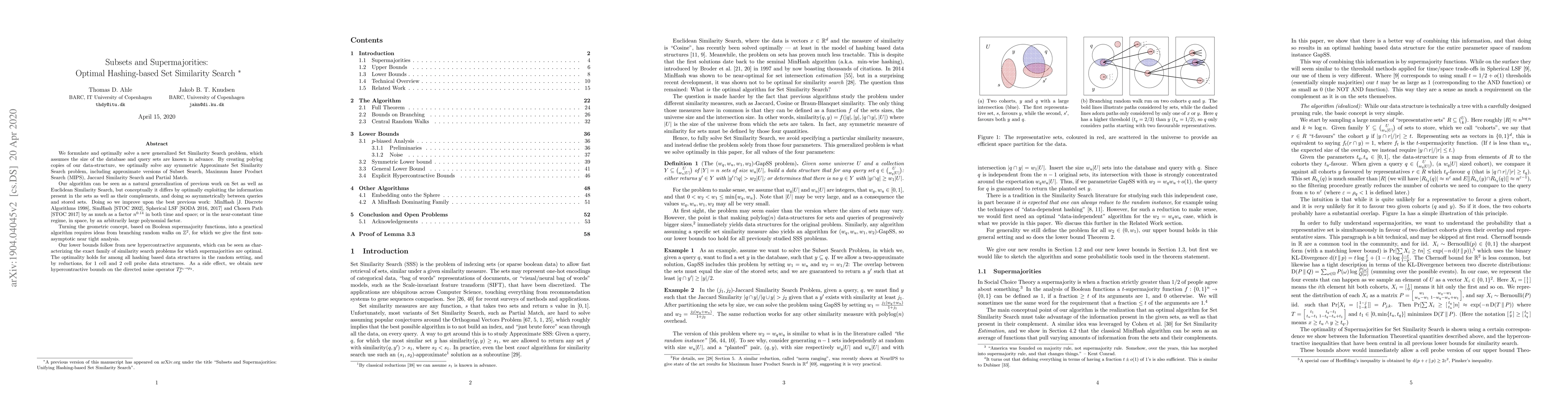 We formulate and optimally solve a new generalized Set Similarity Search problem, which assumes the size of the database and query sets are known in advance. By creating polylog copies of our data-structure, we optimally solve any symmetric Approximate Set Similarity Search problem, including approximate versions of Subset Search, Maximum Inner Product Search (MIPS), Jaccard Similarity Search and Partial Match. Our algorithm can be seen as a natural generalization of previous work on Set as well as Euclidean Similarity Search, but conceptually it differs by optimally exploiting the information present in the sets as well as their complements, and doing so asymmetrically between queries and stored sets. Doing so we improve upon the best previous work: MinHash [J. Discrete Algorithms 1998], SimHash [STOC 2002], Spherical LSF [SODA 2016, 2017] and Chosen Path [STOC 2017] by as much as a factor $n^{0.14}$ in both time and space; or in the near-constant time regime, in space, by an arbitrarily large polynomial factor. Turning the geometric concept, based on Boolean supermajority functions, into a practical algorithm requires ideas from branching random walks on $\mathbb Z^2$, for which we give the first non-asymptotic near tight analysis. Our lower bounds follow from new hypercontractive arguments, which can be seen as characterizing the exact family of similarity search problems for which supermajorities are optimal. The optimality holds for among all hashing based data structures in the random setting, and by reductions, for 1 cell and 2 cell probe data structures. As a side effect, we obtain new hypercontractive bounds on the directed noise operator $T^{p_1 \to p_2}_\rho$.