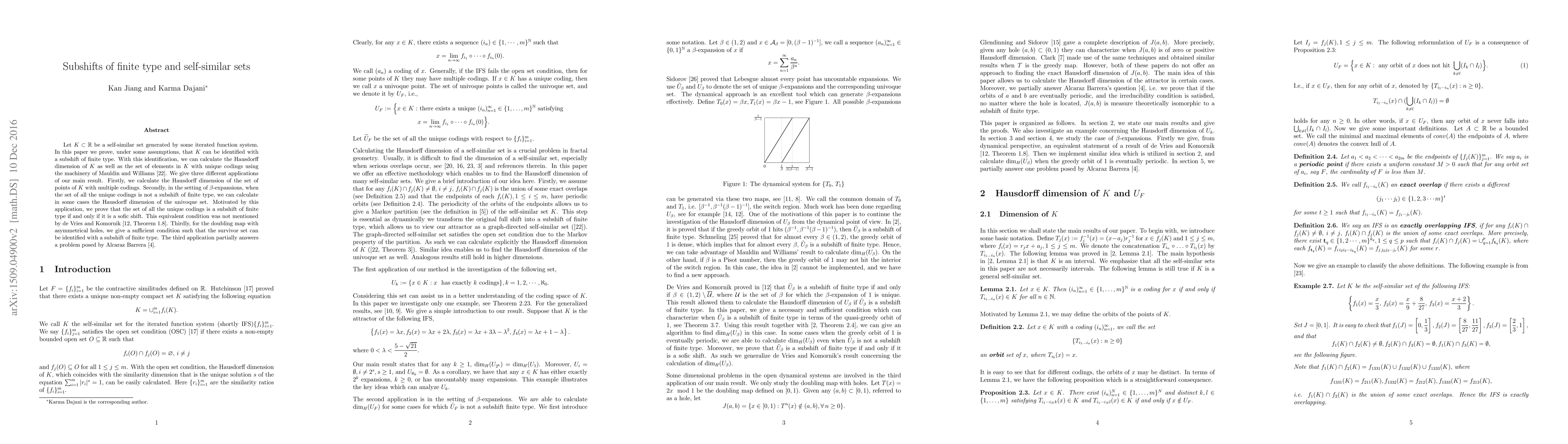 This paper establishes that certain self-similar sets $K$ can be identified with subshifts of finite type, allowing for the calculation of their Hausdorff dimension and the set of uniquely coded elements. It also provides applications to calculate dimensions of multiple codings, univoque sets in $\beta$-expansions, and survivor sets in the context of the doubling map with asymmetrical holes.