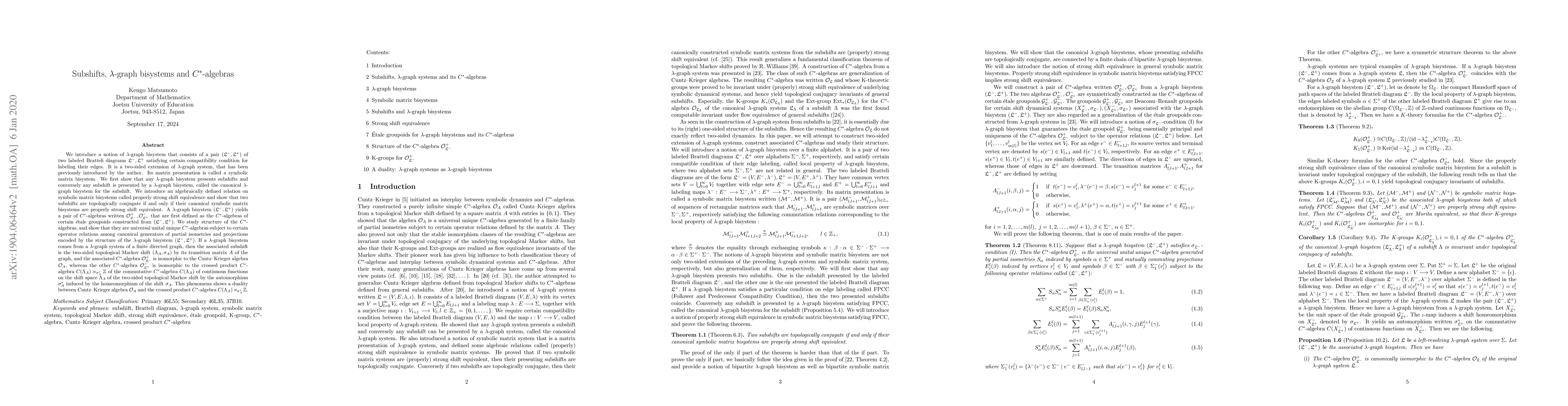 We introduce a notion of $\lambda$-graph bisystem. It consists of a pair $({\frak L}^-, {\frak L}^+)$ of two labeled Bratteli diagrams ${\frak L}^-, {\frak L}^+$ over alphabets $\Sigma^-, \Sigma^+$, respectively, and satisfy certain compatibility condition of their labeling on edges. Its matrix presentation is called a symbolic matrix bisystem. We first show that any $\lambda$-graph bisystem presents subshifts and conversely any subshift is presented by a $\lambda$-graph bisystem, called the canonical $\lambda$-graph bisystem for the subshift. We introduce a notion of properly strong shift equivalence on symbolic matrix bisystems and show that two subshifts are topologically conjugate if and only if their canonical symbolic matrix bisystems are properly strong shift equivalent. A $\lambda$-graph bisystem $({\frak L}^-, {\frak L}^+)$ yields a pair of $C^*$-algebra written ${{\mathcal{O}}_{{\frak L}^-}^+}, {{\mathcal{O}}_{{\frak L}^+}^-}$. We show that the $C^*$-algebras are universal unique $C^*$-algebras subject to certain operator relations among canonical generators encoded by $\lambda$-graph bisystem $({\frak L}^-, {\frak L}^+).$ If a $\lambda$-graph bisystem comes from a $\lambda$-graph system of a finite directed graph, then the associated subshift is the two-sided topological Markov shift $(\Lambda_A, \sigma_A)$ by its transition matrix $A$ of the graph, and the associated $C^*$-algebra ${{\mathcal{O}}_{{\frak L}^-}^+}$ is isomorphic to ${\mathcal{O}}_A,$ whereas the other $C^*$-algebra ${{\mathcal{O}}_{{\frak L}^+}^-}$ is isomorphic to $C(\Lambda_A)\rtimes_{\sigma_A^*}\mathbb{Z}$ of the commutative $C^*$-algebra $C(\Lambda_A)$ on $\Lambda_A$ by the automorphism induced by the homeomorphism of the shift $\sigma_A.$ This phenomena shows a duality between ${\mathcal{O}}_A$ and $C(\Lambda_A)\rtimes_{\sigma_A^*}\mathbb{Z}$.