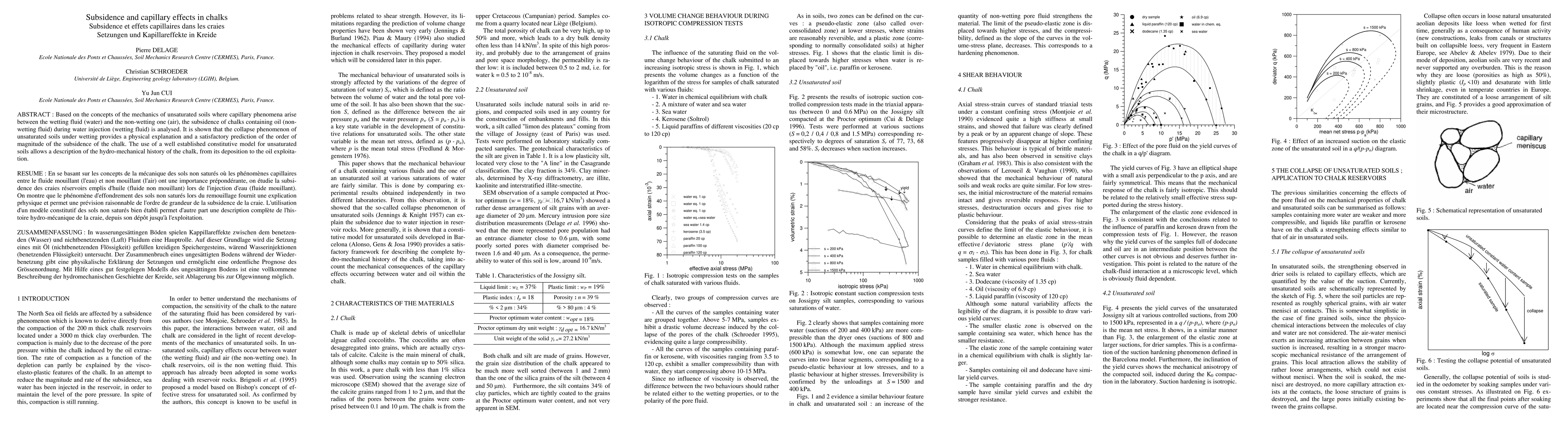 Based on the concepts of the mechanics of unsaturated soils where capillary phenomena arise between the wetting fluid (water) and the non-wetting one (air), the subsidence of chalks containing oil (non-wetting fluid) during water injection (wetting fluid) is analysed. It is shown that the collapse phenomenon of unsaturated soils under wetting provides a physical explanation and a satisfactory prediction of the order of magnitude of the subsidence of the chalk. The use of a well established constitutive model for unsaturated soils allows a description of the hydro-mechanical history of the chalk, from its deposition to the oil exploitation.