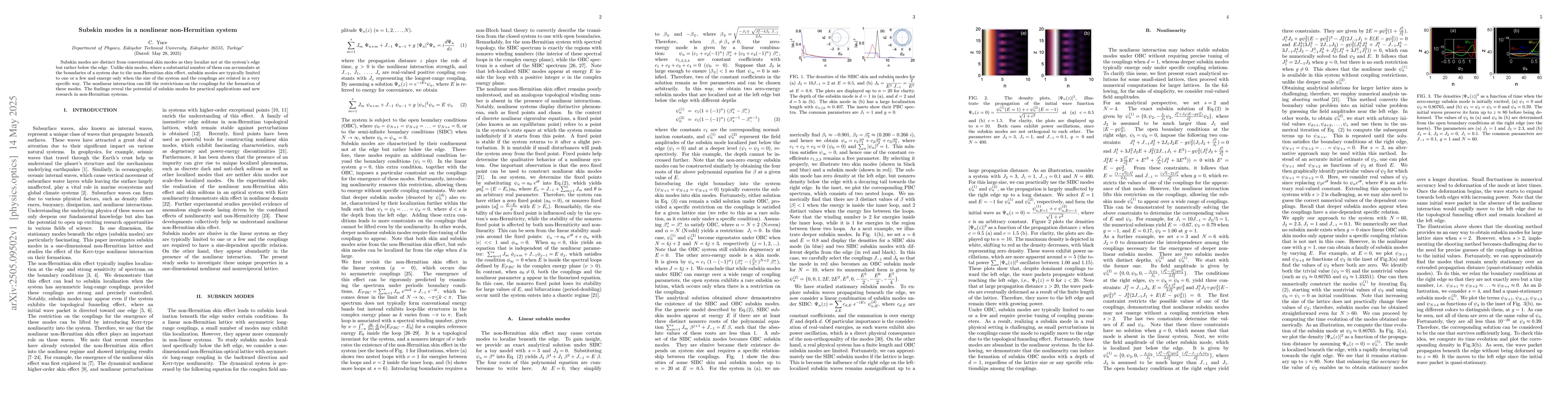 Demonstrates the existence and characteristics of subskin modes in nonlinear non-Hermitian systems.