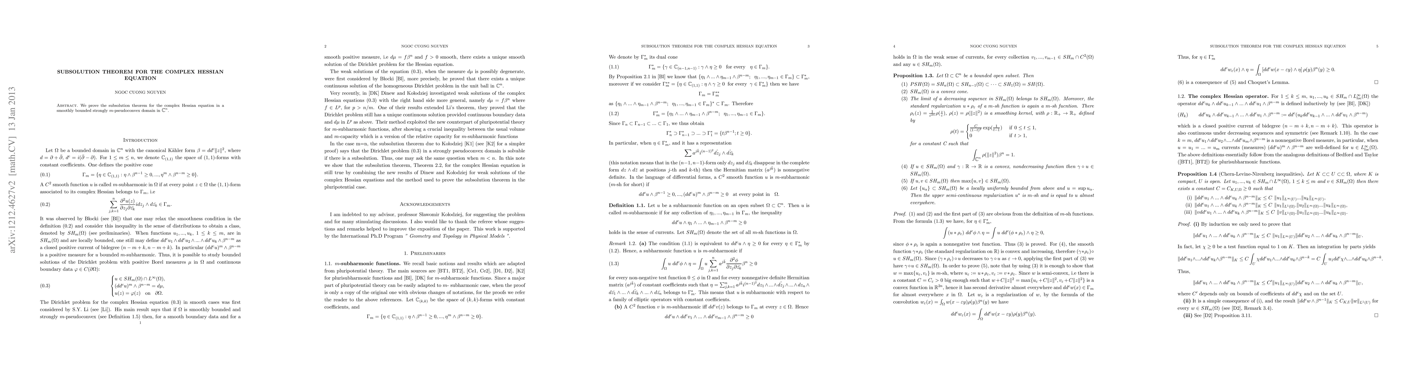 Summary: This paper proves the subsolution theorem for complex Hessian equations in smoothly bounded, strongly $m$-pseudoconvex domains in $\bC^n$, where $1 < m < n$. The result establishes the existence of solutions when given subsolutions.