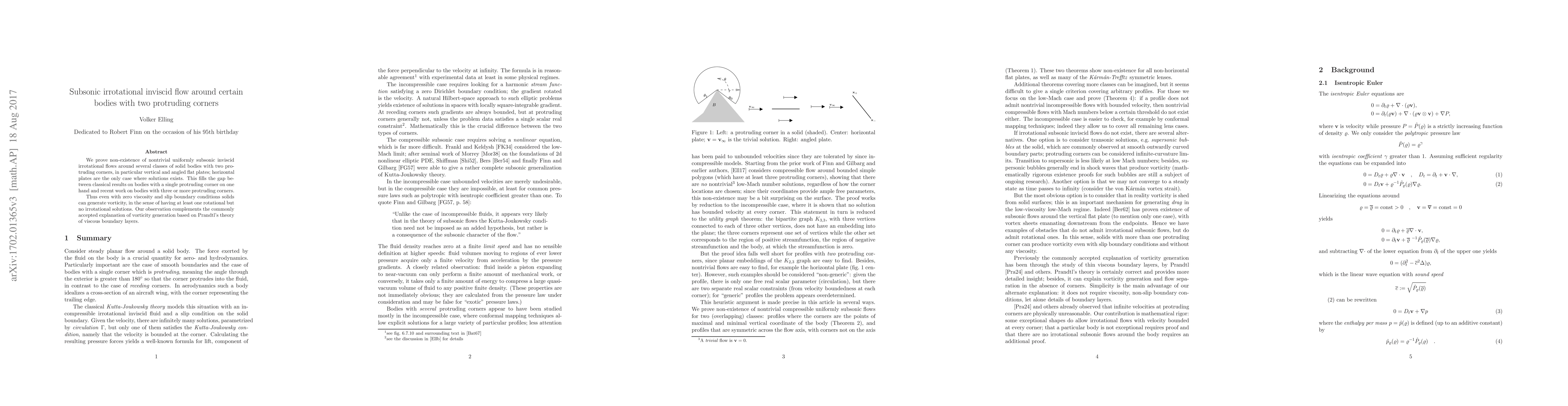 This paper proves the non-existence of uniformly subsonic inviscid irrotational flows around bodies with two protruding corners, except for horizontal plates. It highlights that even inviscid flows can generate vorticity, contrasting with the classical understanding based on viscous boundary layers.