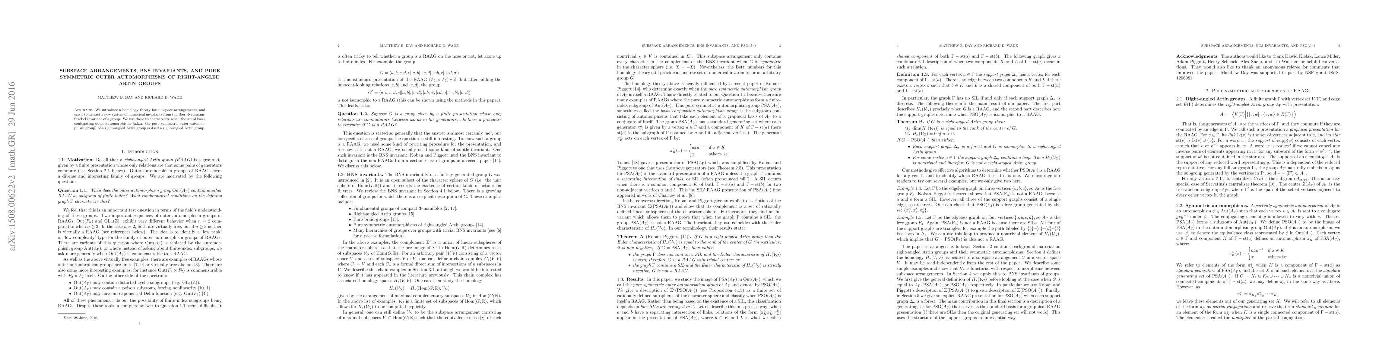 We introduce a homology theory for subspace arrangements, and use it to extract a new system of numerical invariants from the Bieri-Neumann-Strebel invariant of a group. We use these to characterize when the set of basis conjugating outer automorphisms (a.k.a. the pure symmetric outer automorphism group) of a right-angled Artin group is itself a right-angled Artin group.