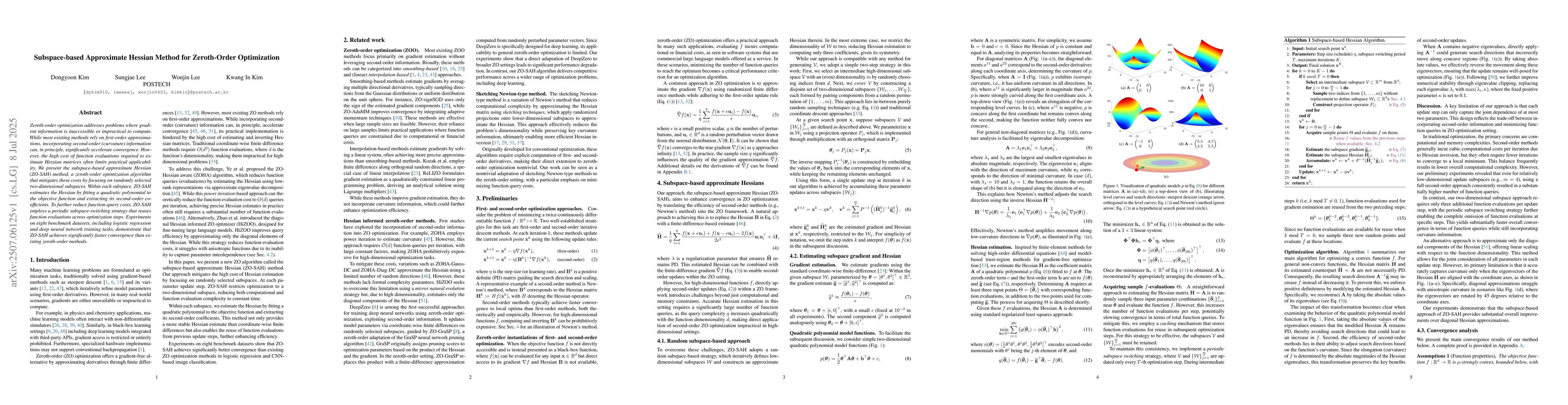 Zeroth-order optimization addresses problems where gradient information is inaccessible or impractical to compute. While most existing methods rely on first-order approximations, incorporating second-order (curvature) information can, in principle, significantly accelerate convergence. However, the high cost of function evaluations required to estimate Hessian matrices often limits practical applicability. We present the subspace-based approximate Hessian (ZO-SAH) method, a zeroth-order optimization algorithm that mitigates these costs by focusing on randomly selected two-dimensional subspaces. Within each subspace, ZO-SAH estimates the Hessian by fitting a quadratic polynomial to the objective function and extracting its second-order coefficients. To further reduce function-query costs, ZO-SAH employs a periodic subspace-switching strategy that reuses function evaluations across optimization steps. Experiments on eight benchmark datasets, including logistic regression and deep neural network training tasks, demonstrate that ZO-SAH achieves significantly faster convergence than existing zeroth-order methods.